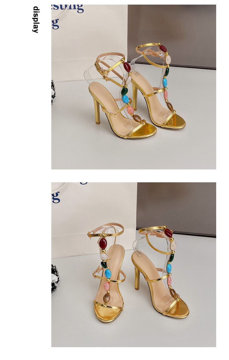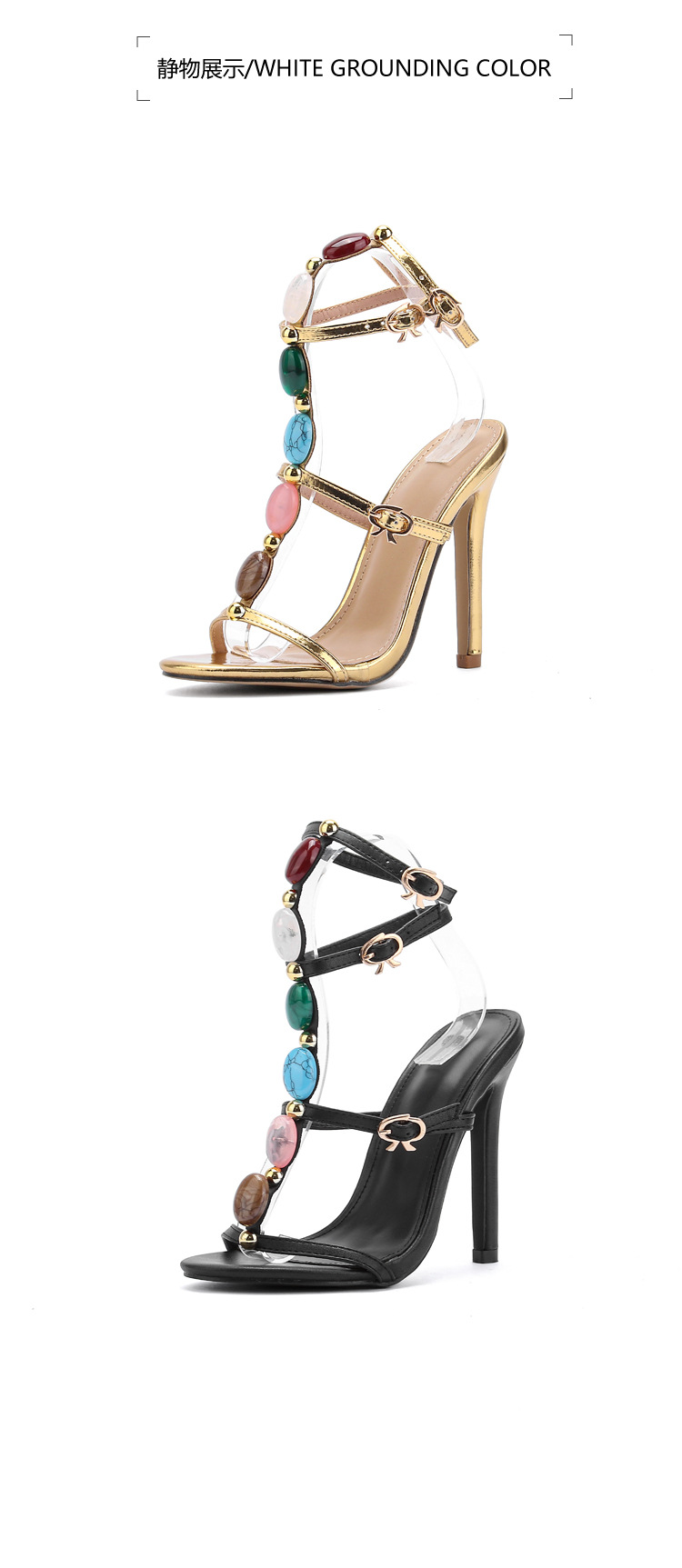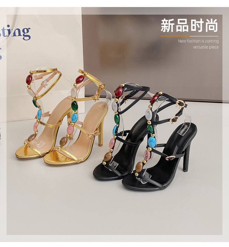 여름 2024 유럽과 미국의 새로운 11CM 스틸레토 힐 진주 오픈 토 버클 샌들 여성의 섹시한 기질
