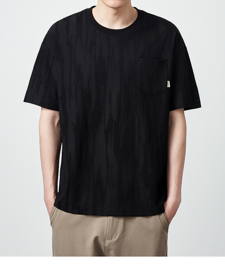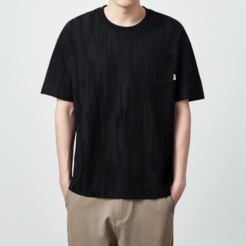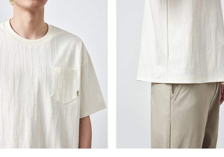Momaike 간단한 질감 대비 색상 남성 반팔 티셔츠 2025 여름 신작 라운드 넥 루즈 티셔츠 남성 71298