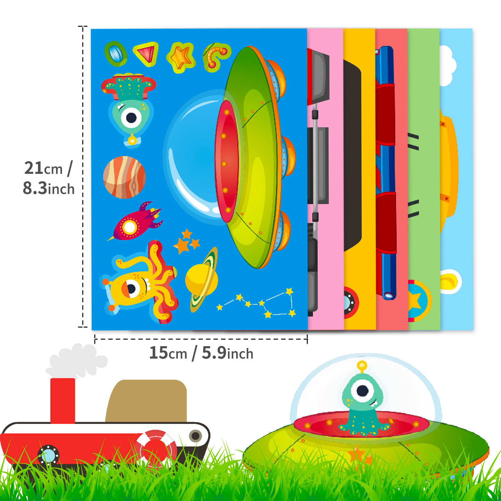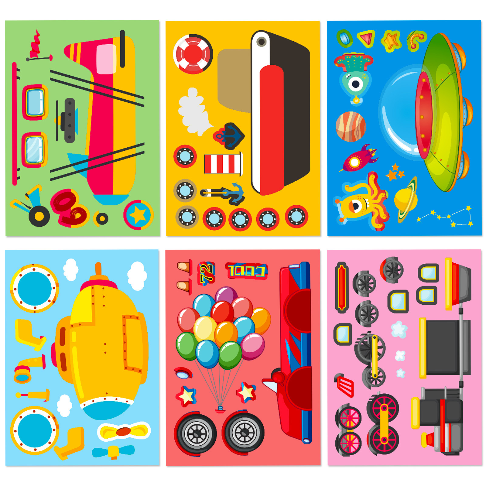 아마존 국경 간 새로운 부모 자식 대화 형 퍼즐 스티커 6 장/팩 교통 항공사 선박 얼굴 변경 스티커스토어 가기