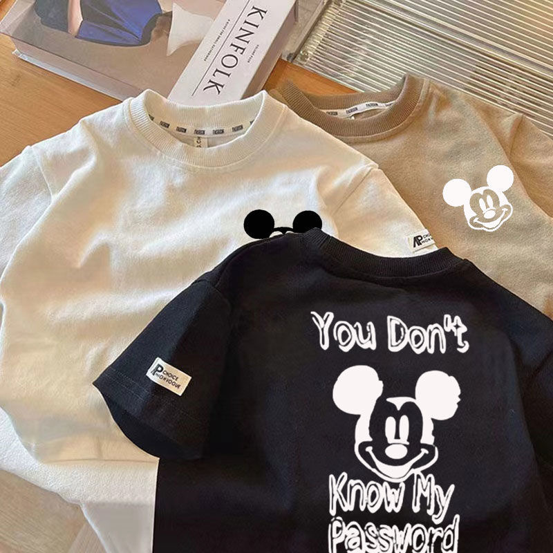 남학생과 여학생을위한 새로운 면화 여름 어린이 한국식 티셔츠 만화 잘 생긴 반팔 최고 여름 둥근 목 바닥 셔츠 T