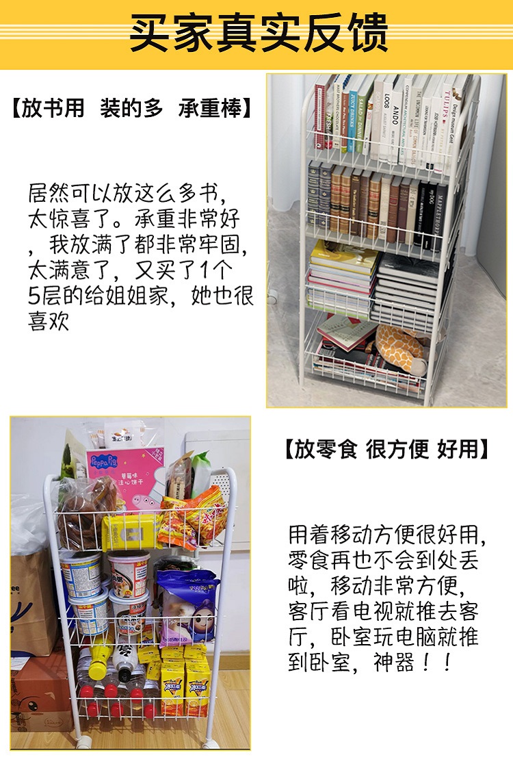 트롤리 스토리지 랙 스택 모바일 층 다층 주방 침실 가정용 책장 야채 스낵 보관 Beiqin스토어 가기