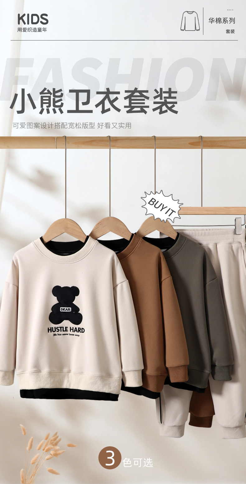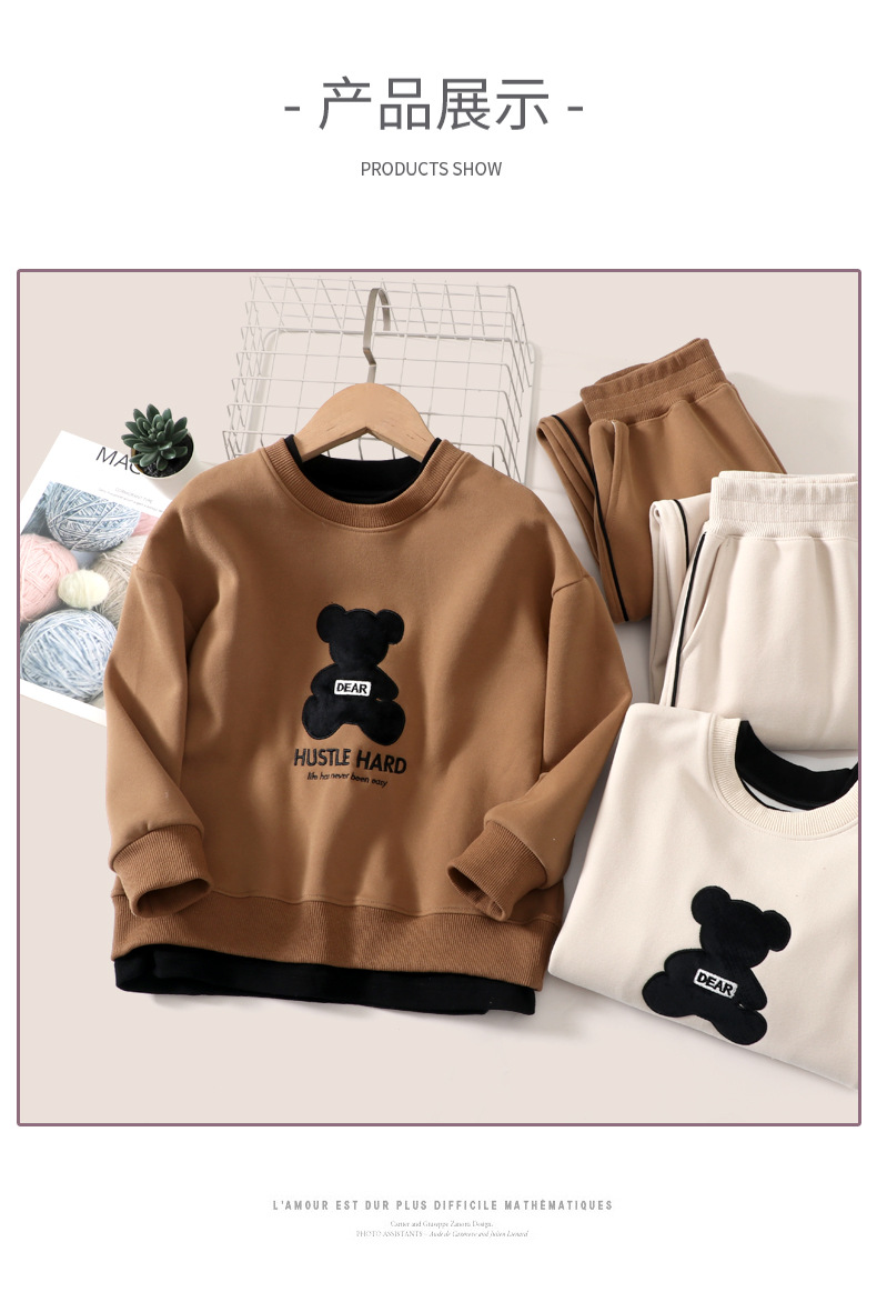 봄 새로운 어린이 세트 소년 스웨터 스웻 바지 투피스 세트 소녀 가을 스포츠 세트 아기 옷스토어 가기
