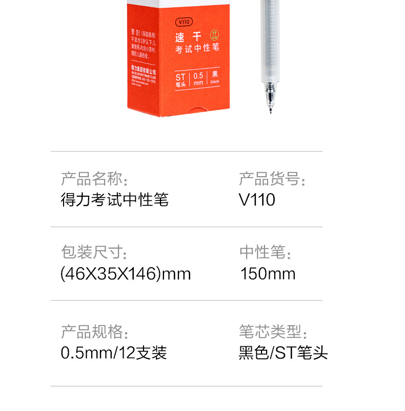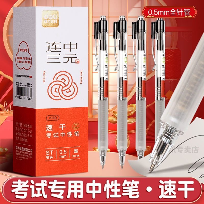 Deli V110 빠른 건조 푸시 테스트 젤 펜 0.5MMst 헤드 연속 고등학교 입학 시험 펜스토어 가기