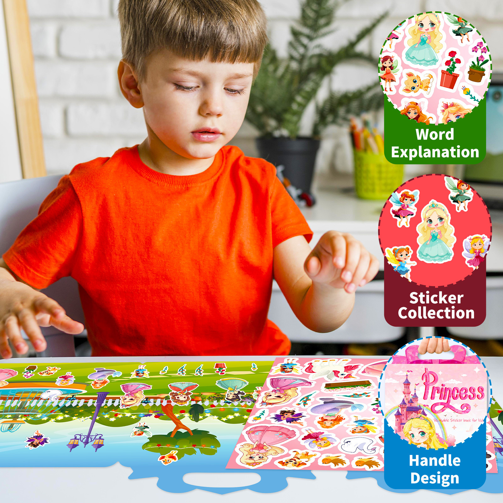 국경 간 휴대용 조용한 책 아기 스티커 교육 유아 교육 어린이 장면 동화 공주 젤리 스티커 책스토어 가기
