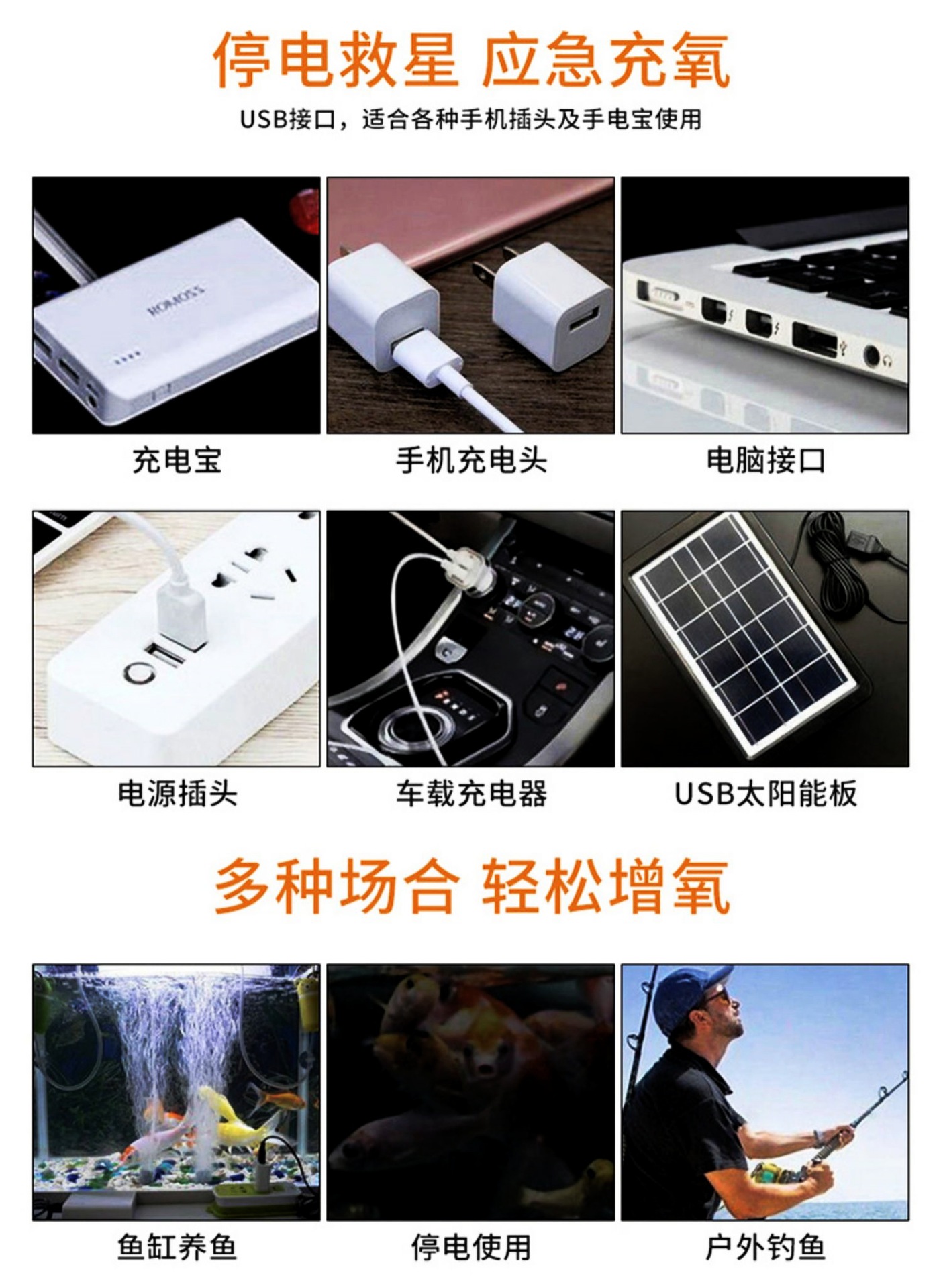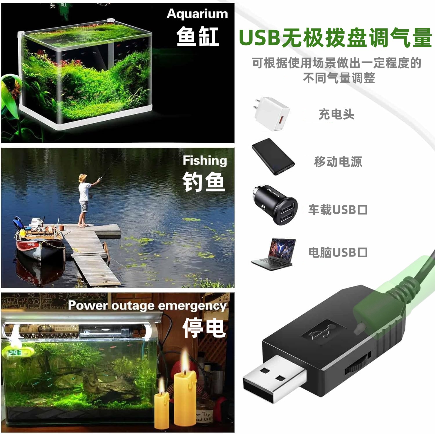 USB 무단계 조절 가능한 공기량 산소펌프 어항 낚시 펌프 기계 산소펌프 수족관 산소공급기 휴대용 야외용