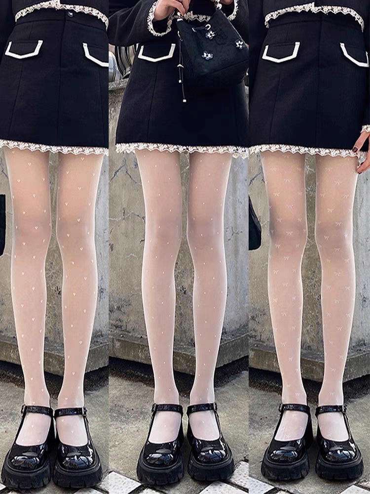 로리타 폴카 도트 하트 활 화이트 스타킹 폴카 도트 jk 화이트 실크 섹시 팬티 스타킹을 묶는 여성의 봄과 여름 순수한 욕망스토어 가기