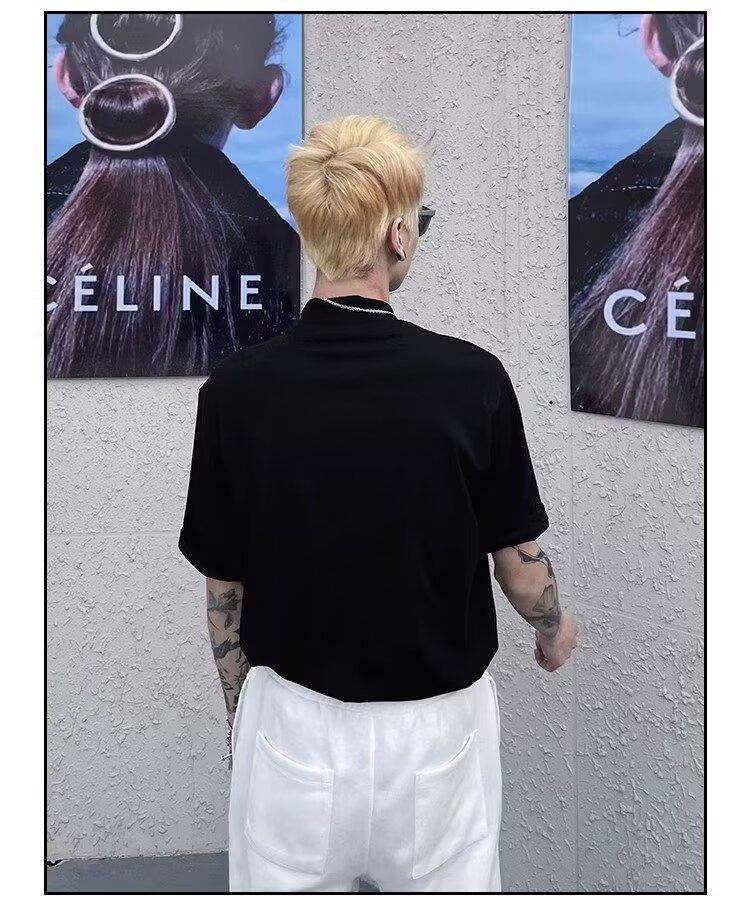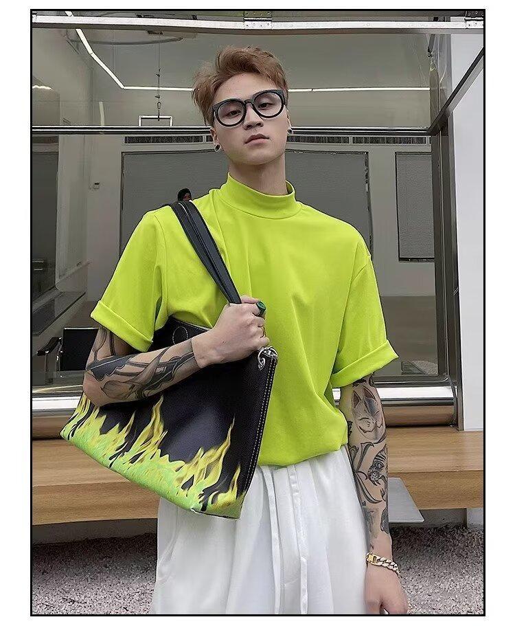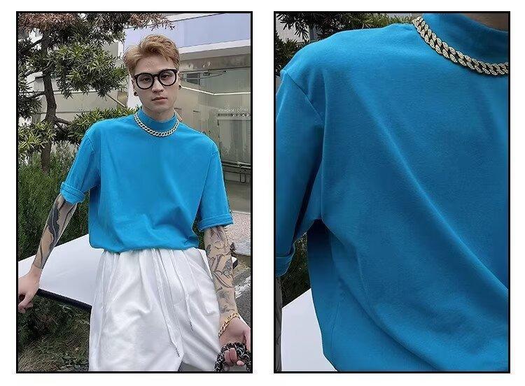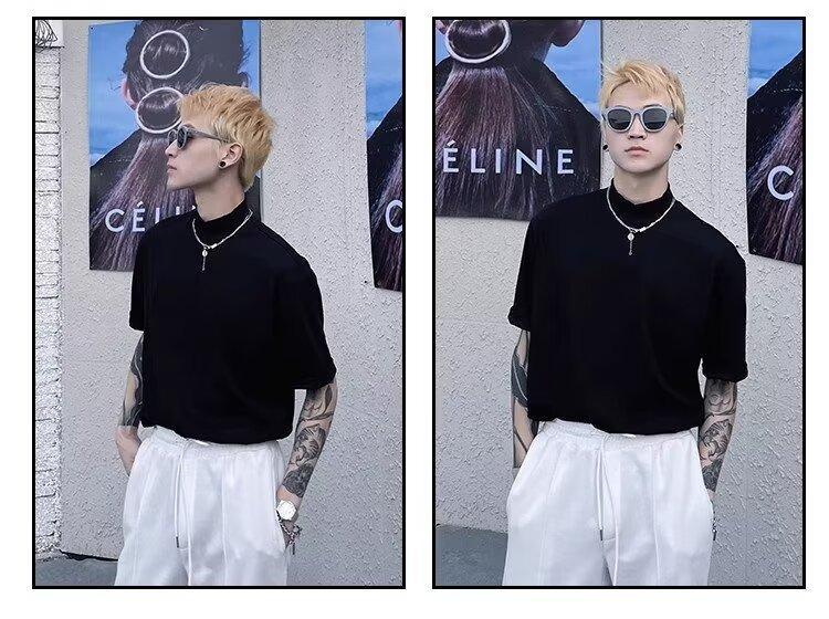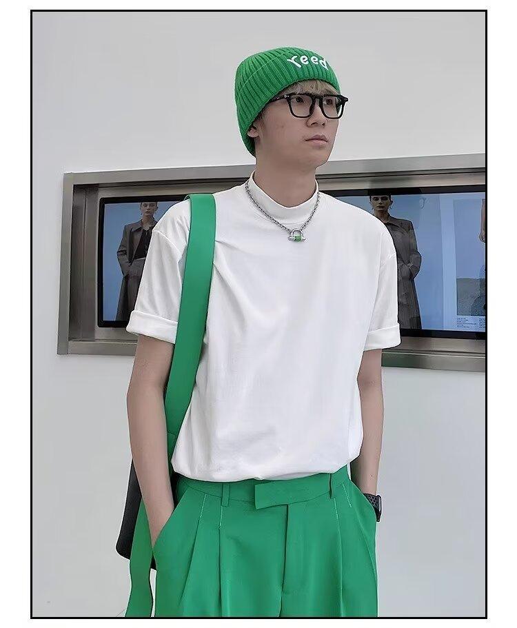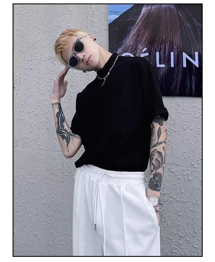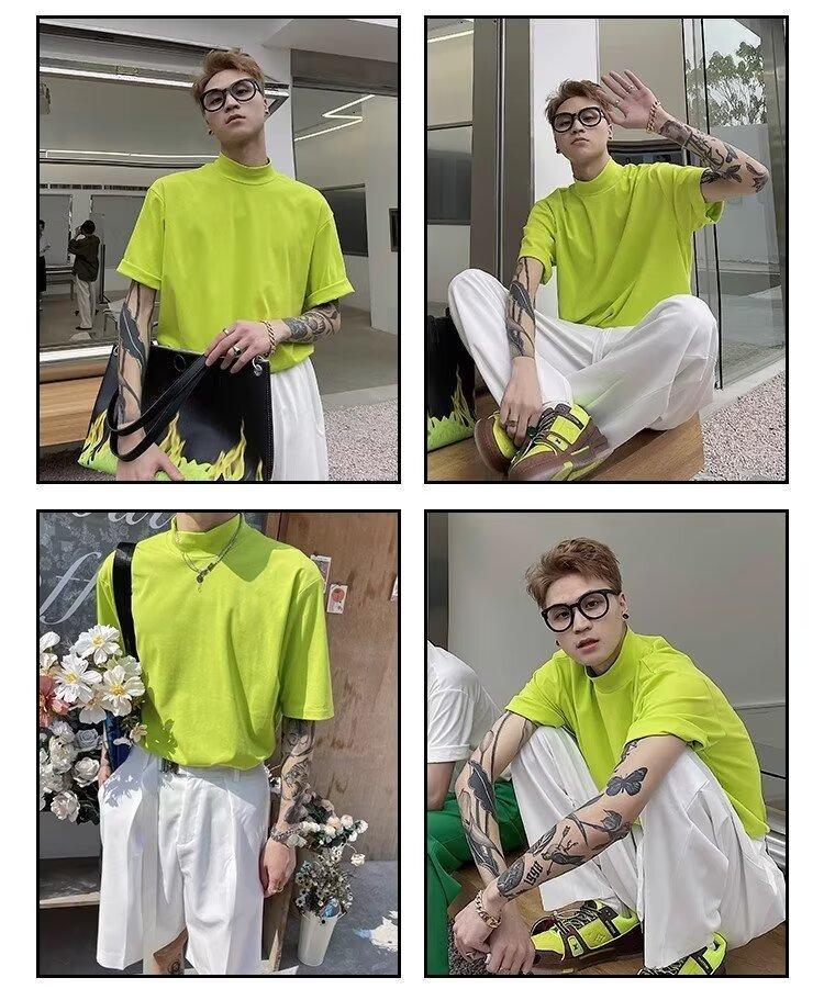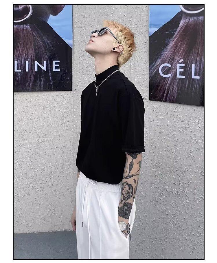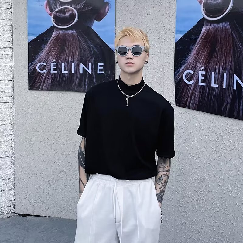 프랑스 스타일의 작은 터틀넥 티셔츠 예술적 스타일 소년 반팔 인터넷 유명인 미드 칼라 바닥 셔츠 시원한 얇은면 느낌 하프 터틀넥 티셔츠