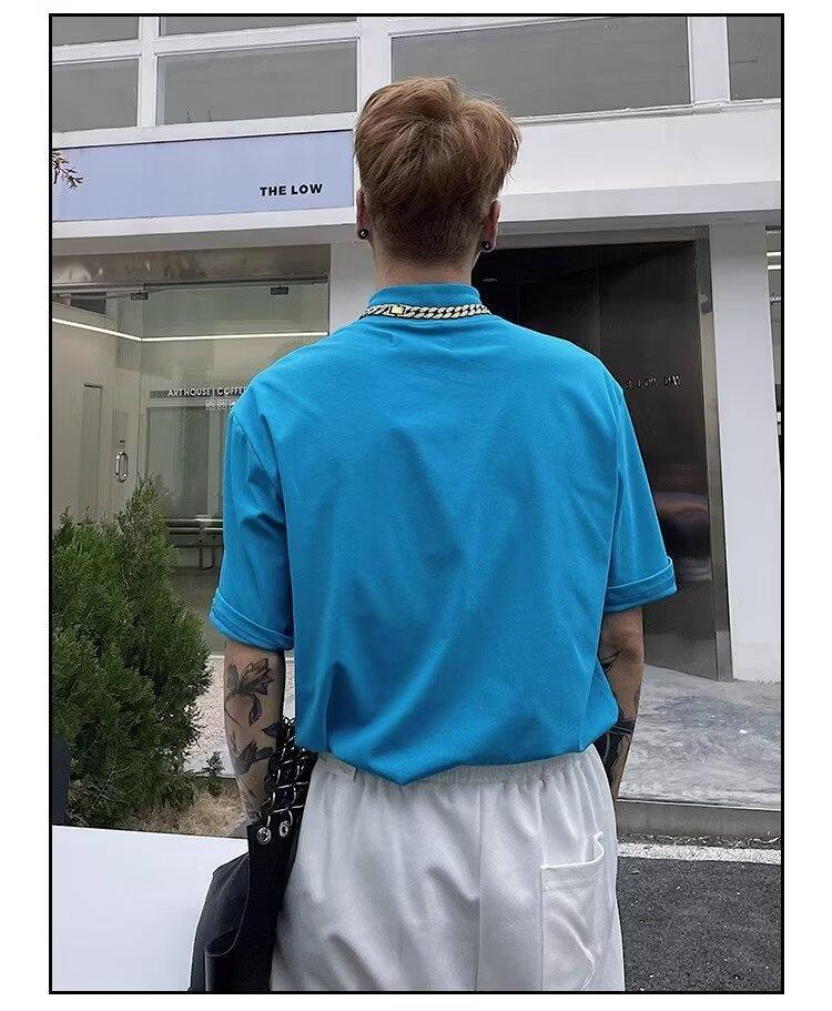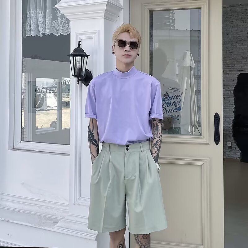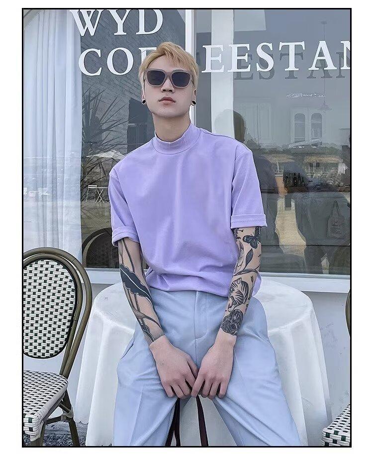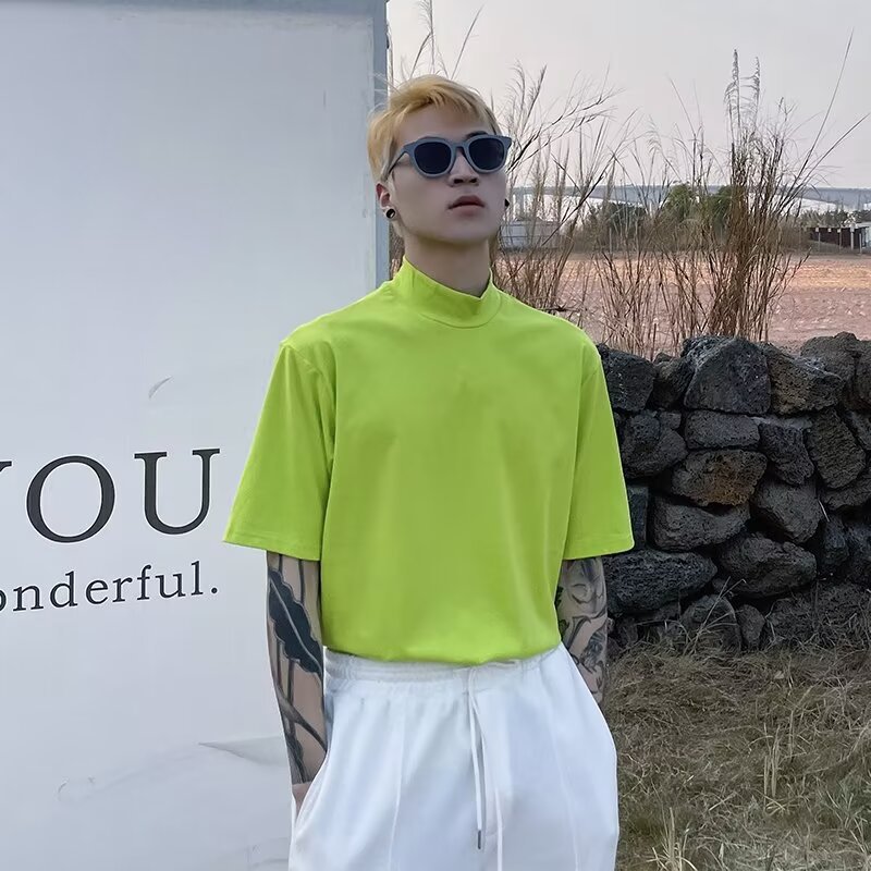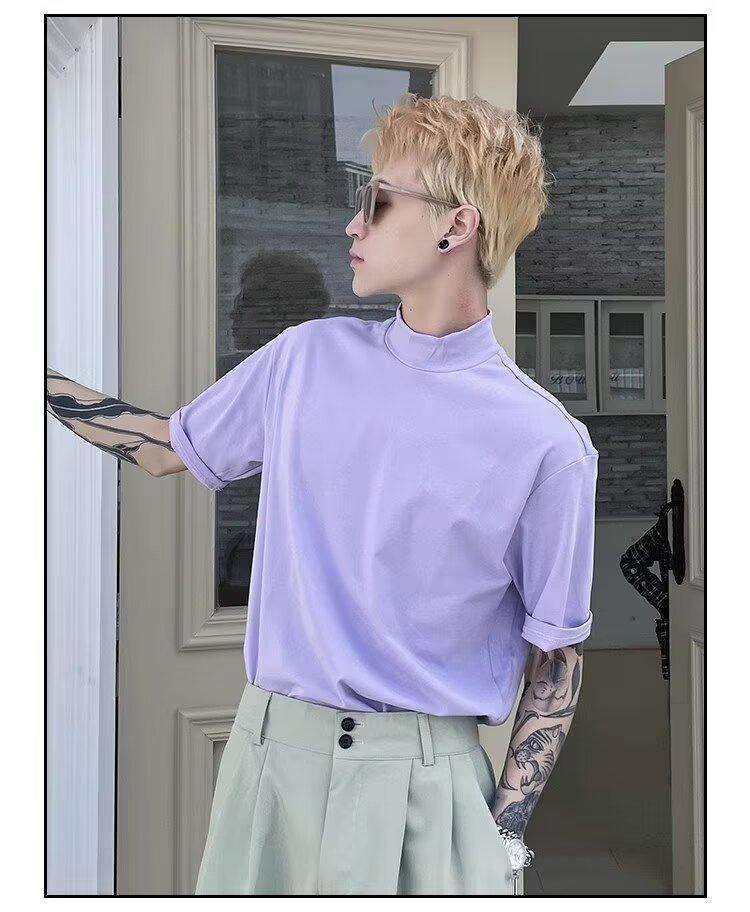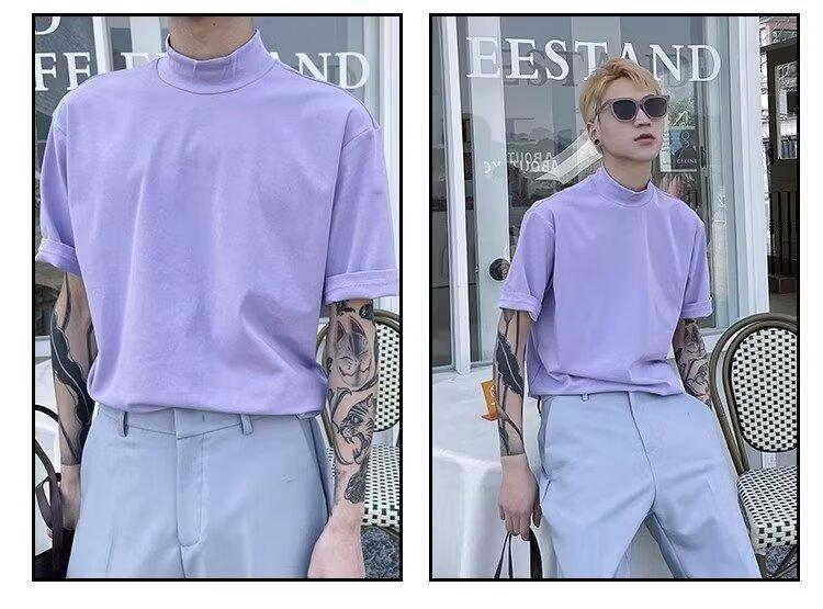 프랑스 스타일의 작은 터틀넥 티셔츠 예술적 스타일 소년 반팔 인터넷 유명인 미드 칼라 바닥 셔츠 시원한 얇은면 느낌 하프 터틀넥 티셔츠스토어 가기