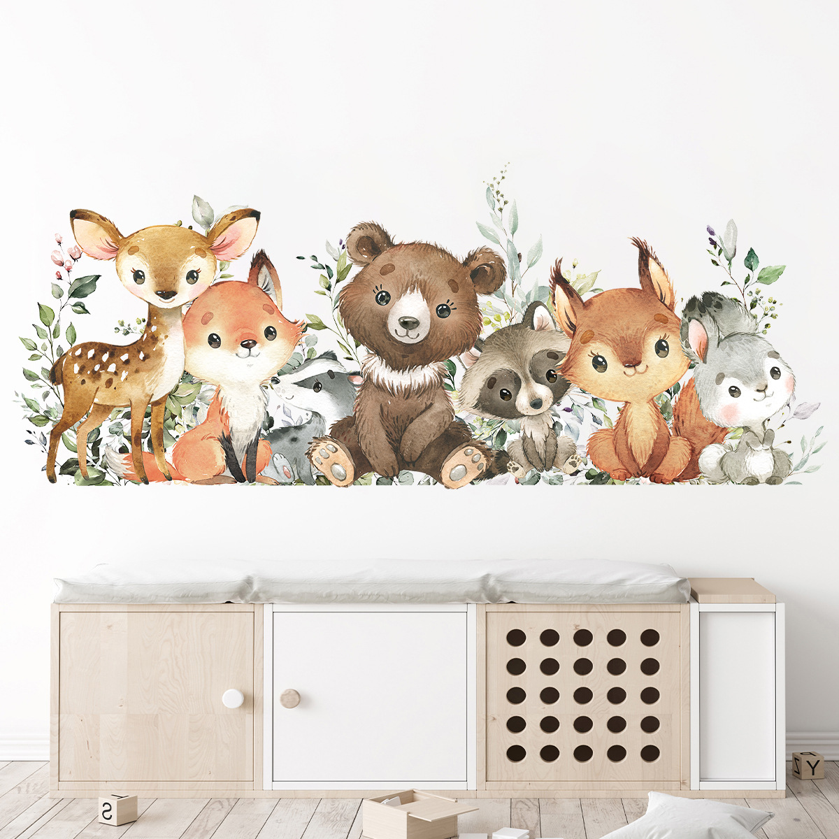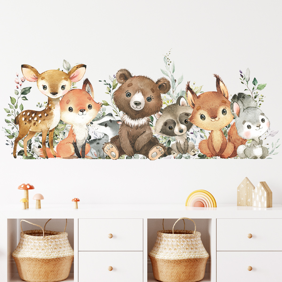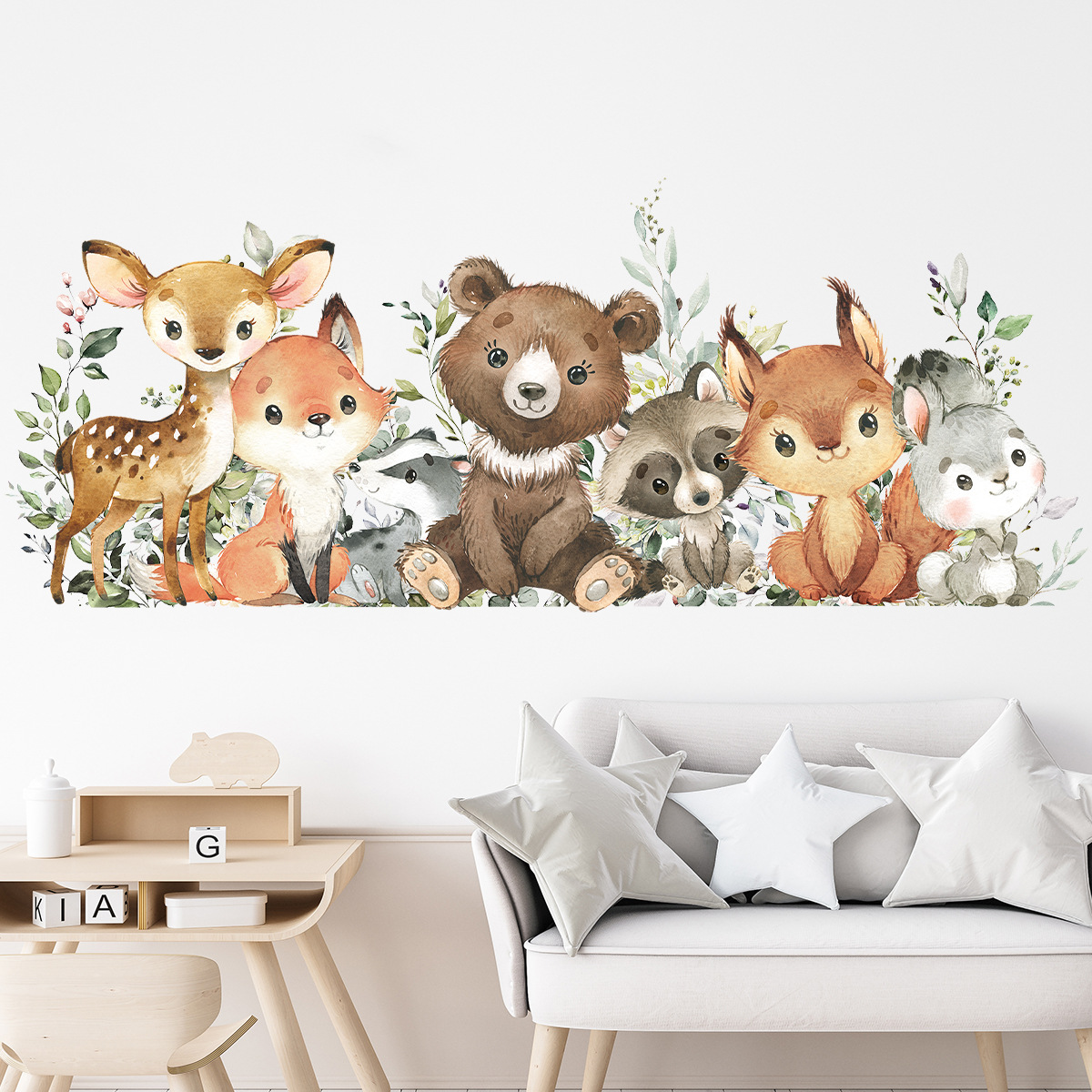 BR0053F 만화 귀여운 Q 버전 치유 작은 동물 자기 접착 벽 스티커 거실 침실 어린이 방 장식 스티커
