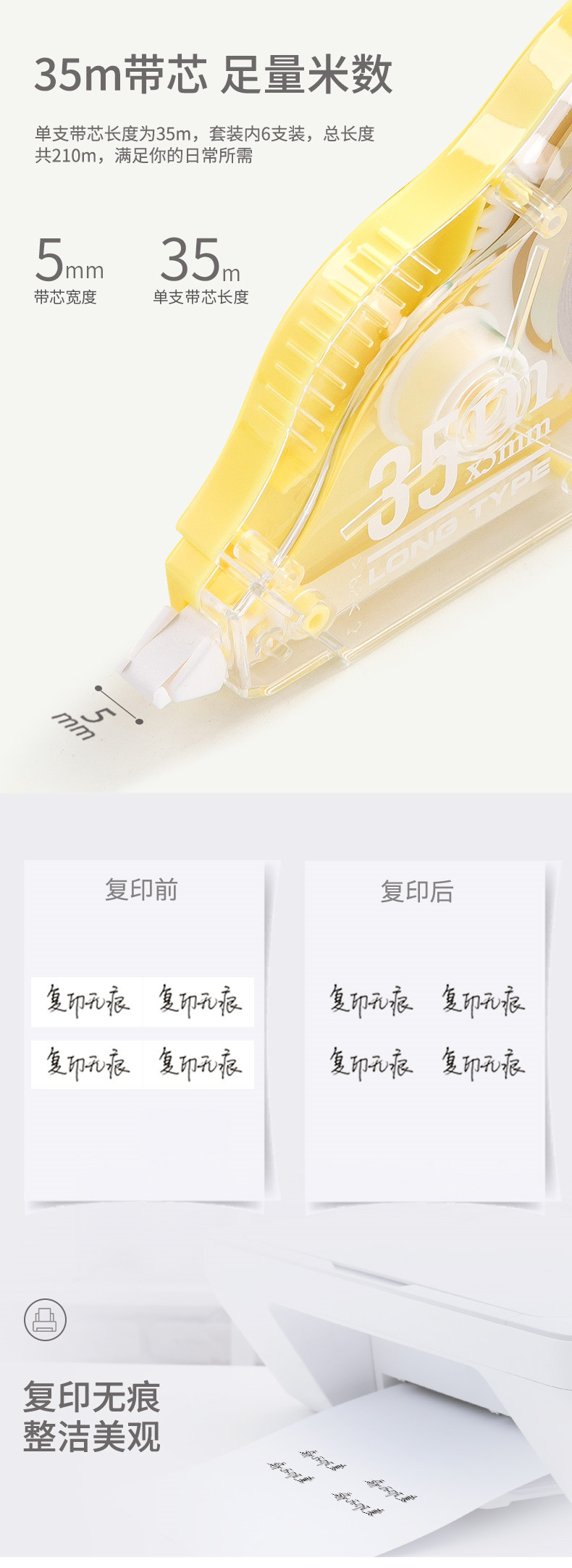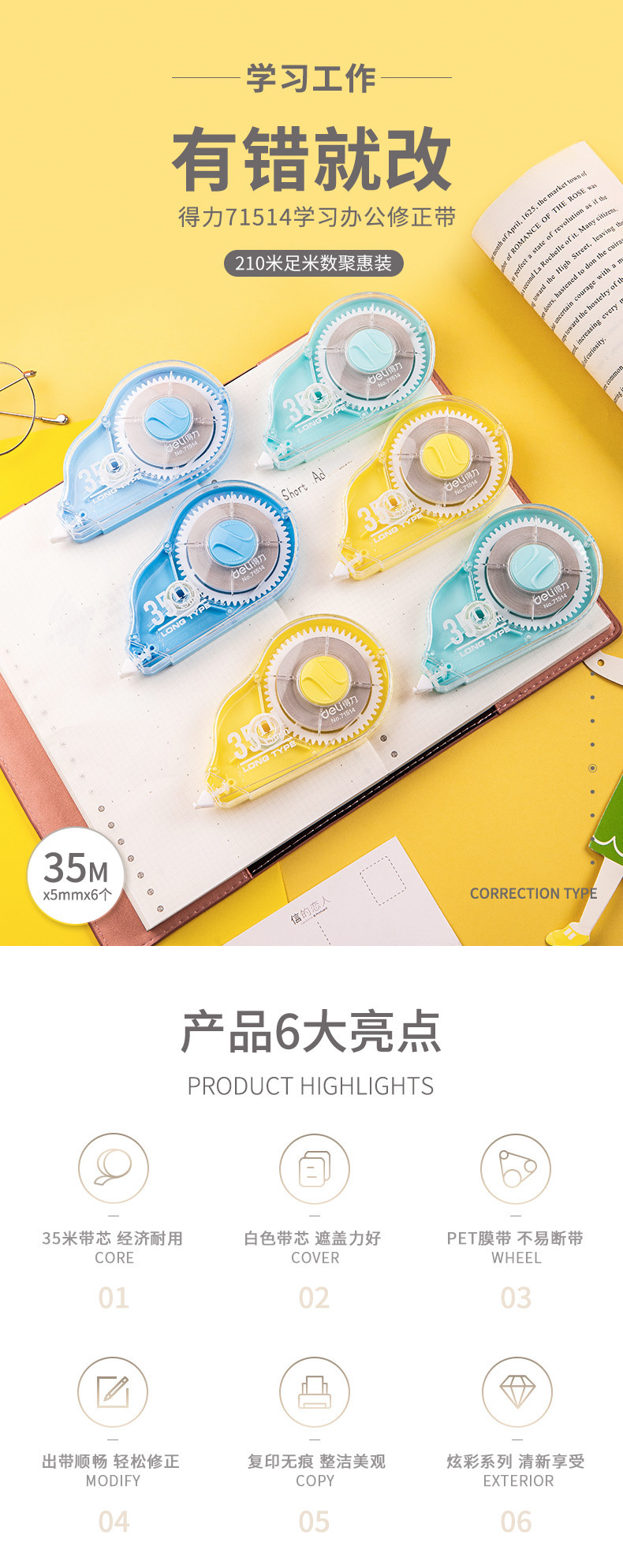 델리 71514 보정 테이프 간단한 투명 보정 테이프 보정 테이프 6 팩 210m 저렴한 수정 테이프