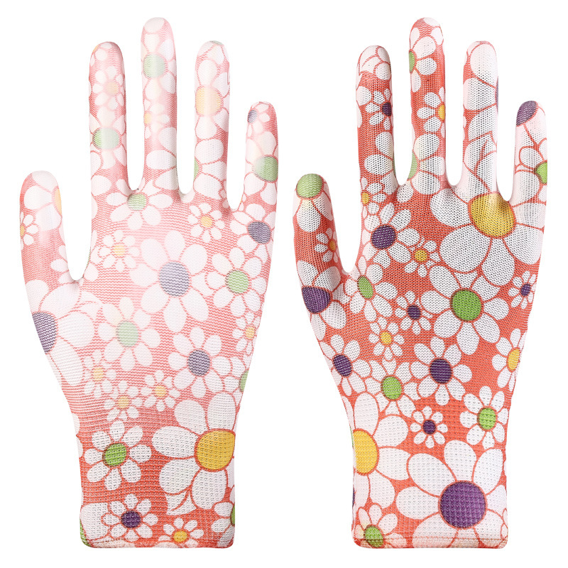 얇은 여성용 컬러풀한 PU 코팅 팜 나일론 코팅 미끄럼 방지 내마모성 통기성 야외 원예 작업 노동 보호 장갑스토어 가기
