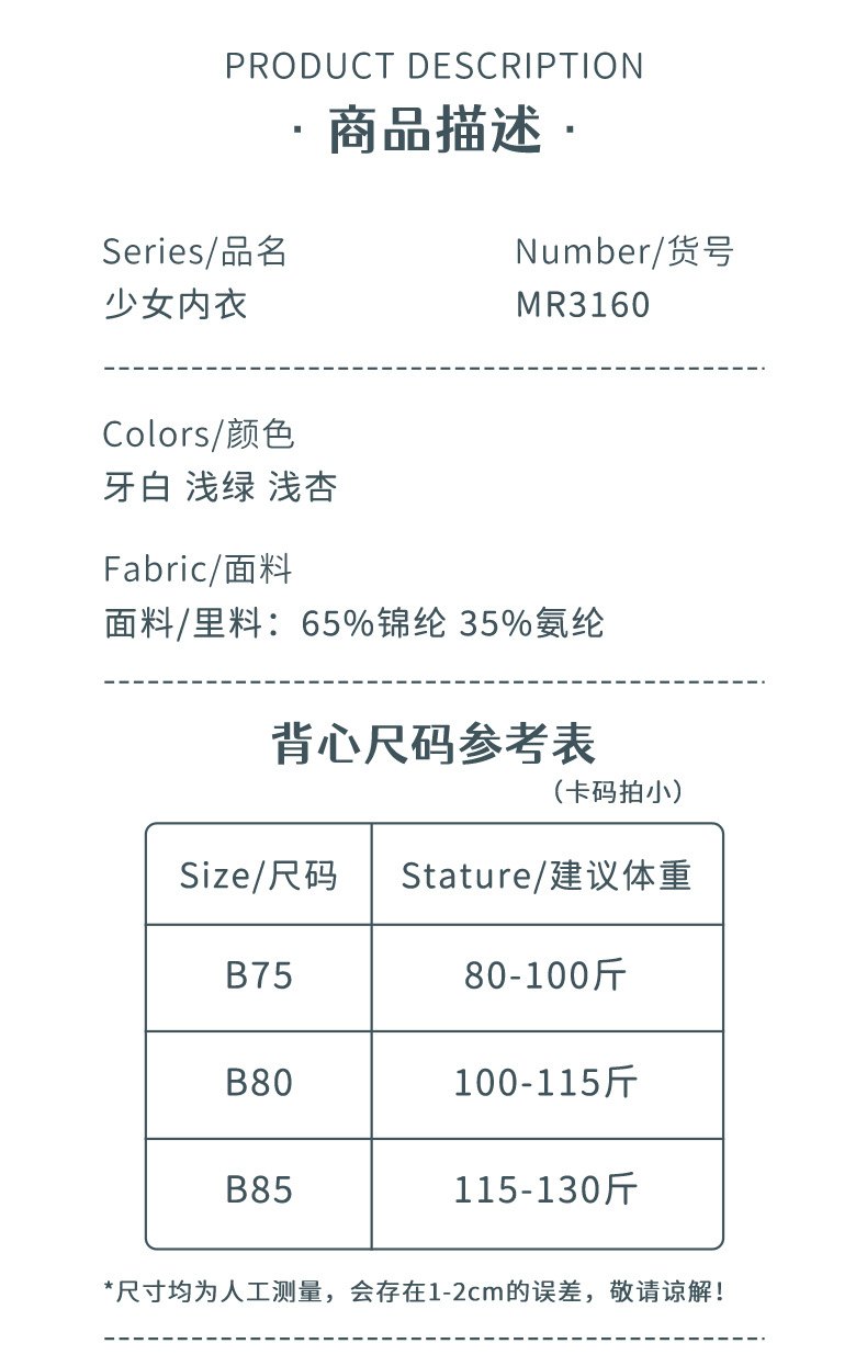 소녀 속옷 중학교 학생 개발 기간 원활한 브래지어 소녀의 사춘기 3 단계 뷰티 백 조끼 여름