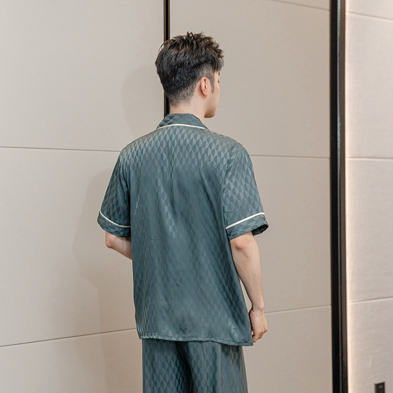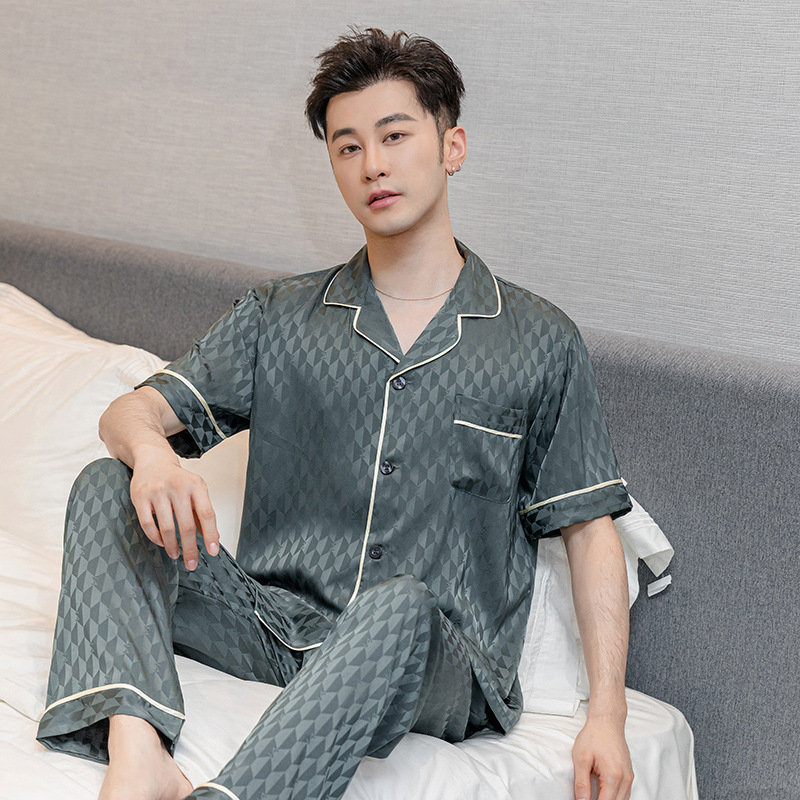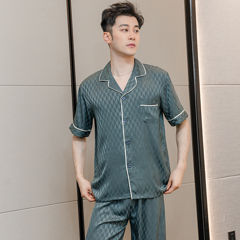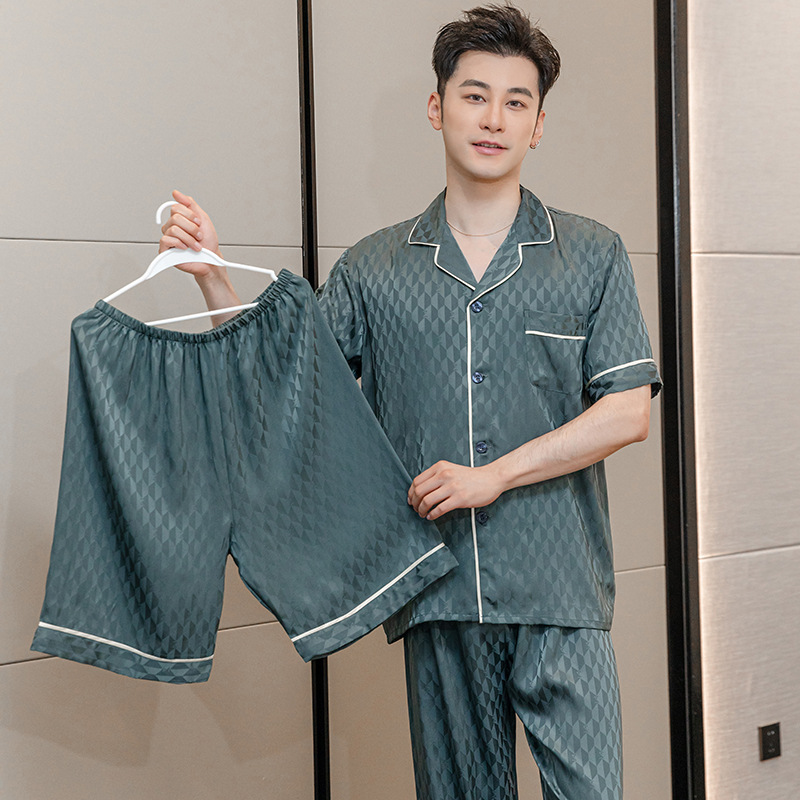 잠옷 남자 여름 아이스 실크 반팔 바지 반바지 3 피스 자카드 고급 봄과 가을 여름 가정복 세트