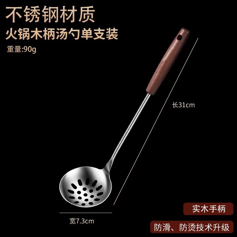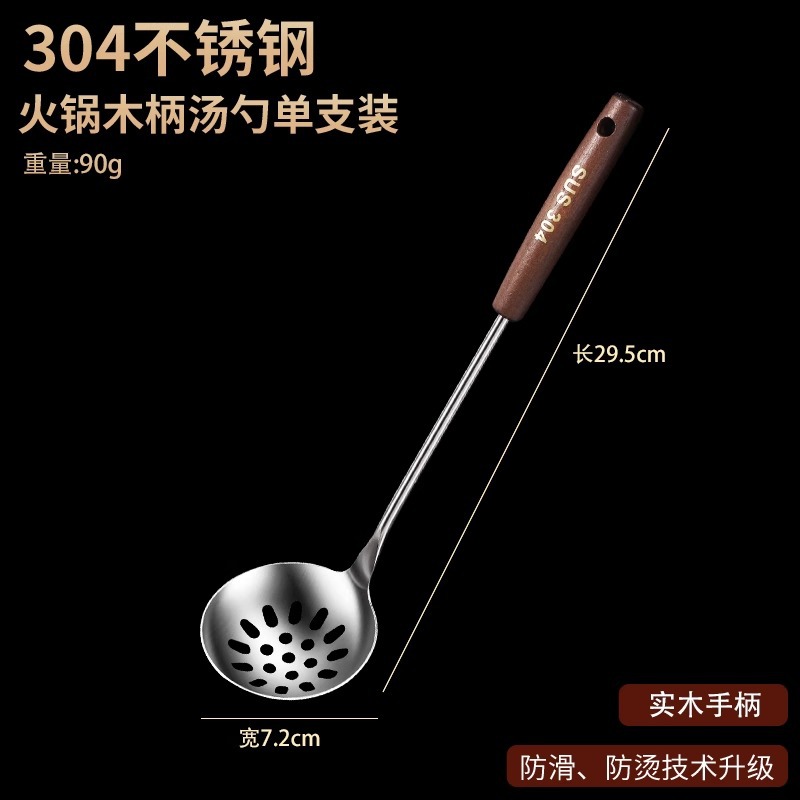 • 304 스테인레스 스틸 냄비 스푼 세트 - 단단한 나무 손잡이