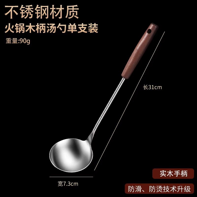 • 304 스테인레스 스틸 냄비 수프 스푼 - 단단한 나무 손잡이