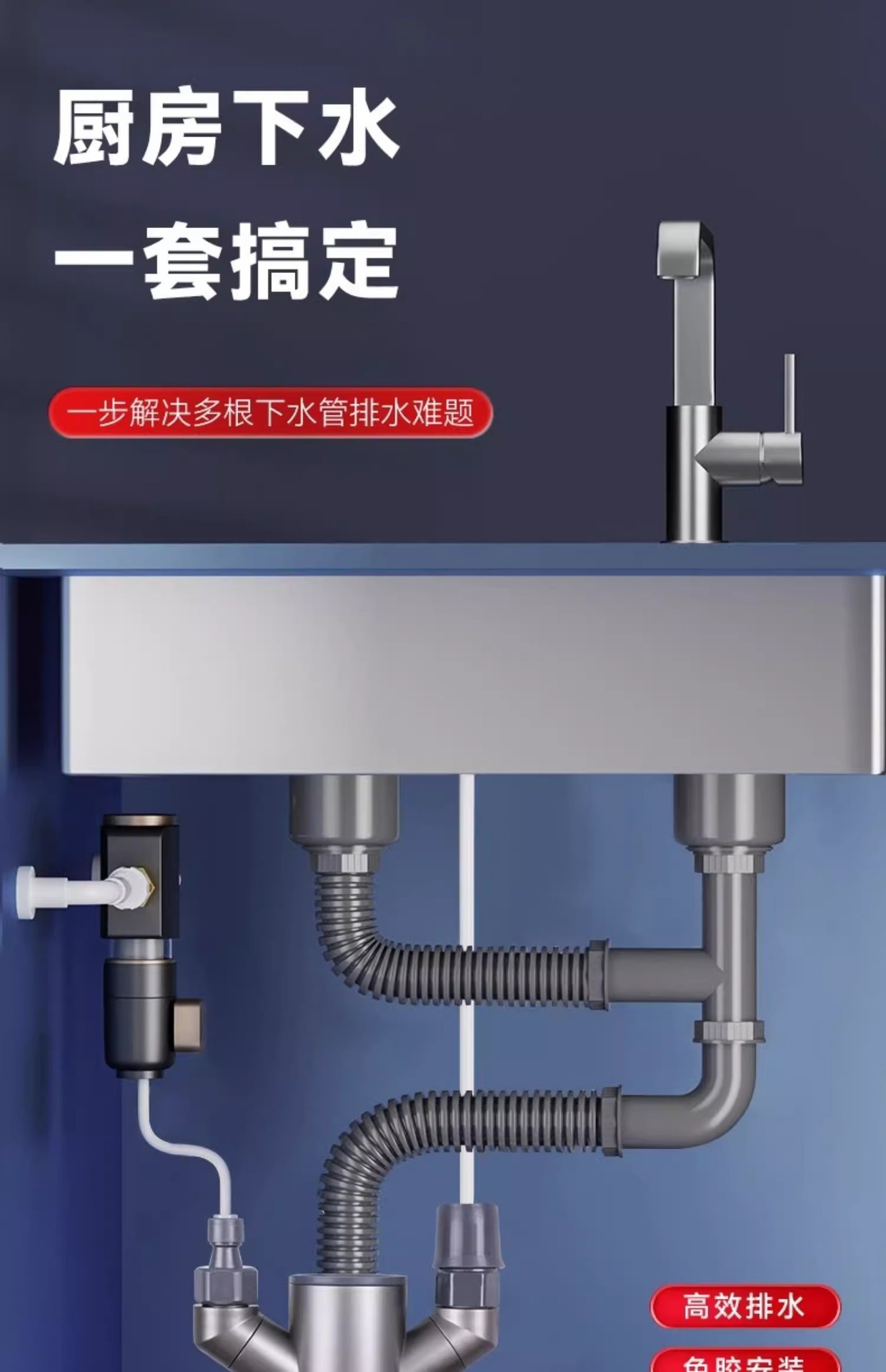 • 주방 배수구 멀티 패스 [여러 커넥터 포함]