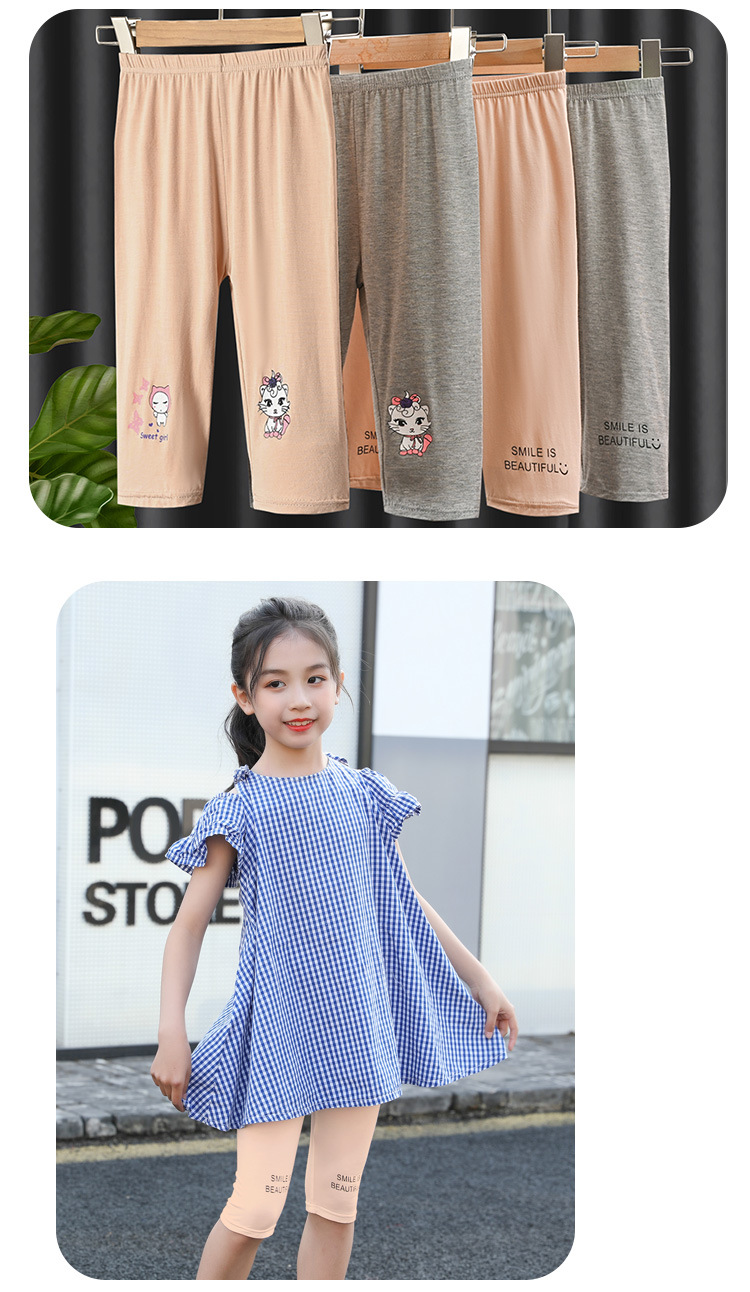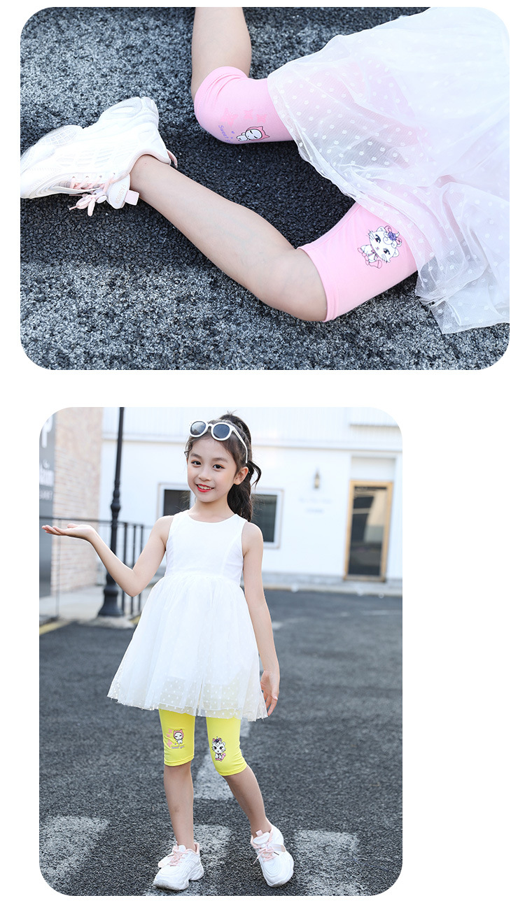 얇은 어린이 레깅스 어린이 간단한 서양식 타이트한 스트레치 바지 소녀 캔디 컬러 만화 반바지스토어 가기