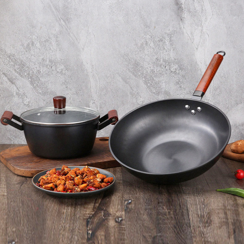 1、优质精铁基材延展性强,防摔抗撞:加厚锅底, 受热均匀,使用寿命长。