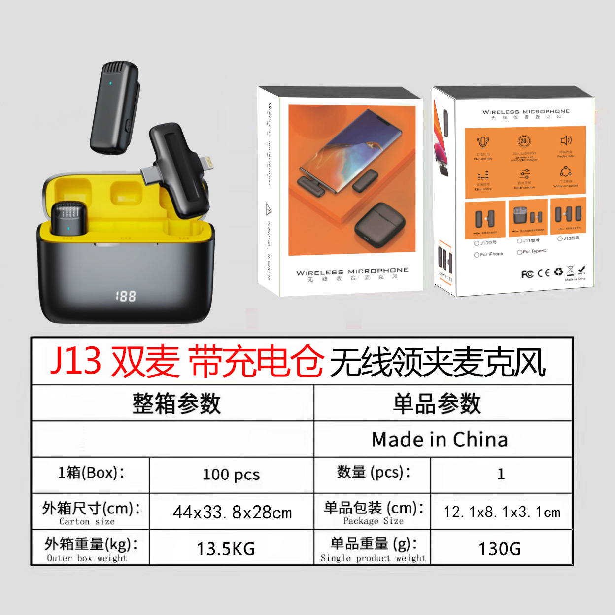 공장 직접 뜨거운 J13 충전 창고 휴대 전화 라이브 라디오 마이크가있는 일대일 무선 칼라 클립 마이크스토어 가기