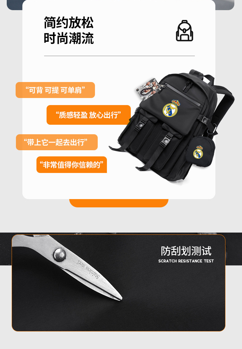 축구 가방 레알 마드리드 바르셀로나 파리 챔피언스 리그 배낭 학생 남성 패션 유행 컴퓨터 가방 대용량 캐주얼 가방