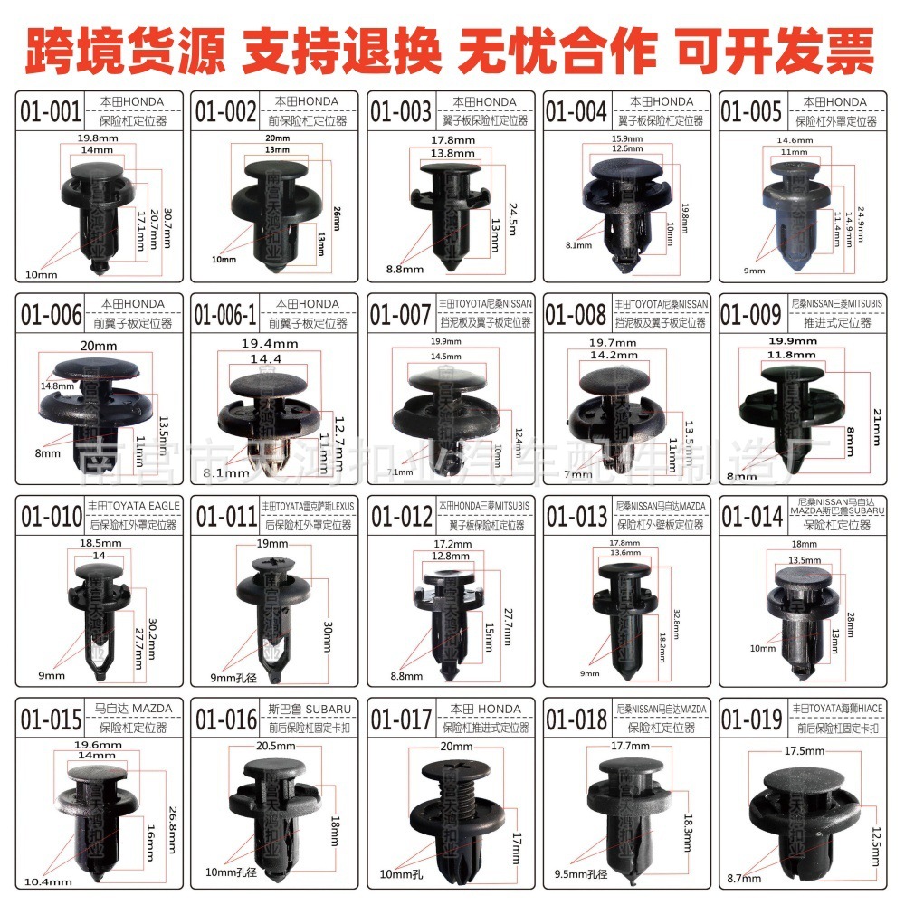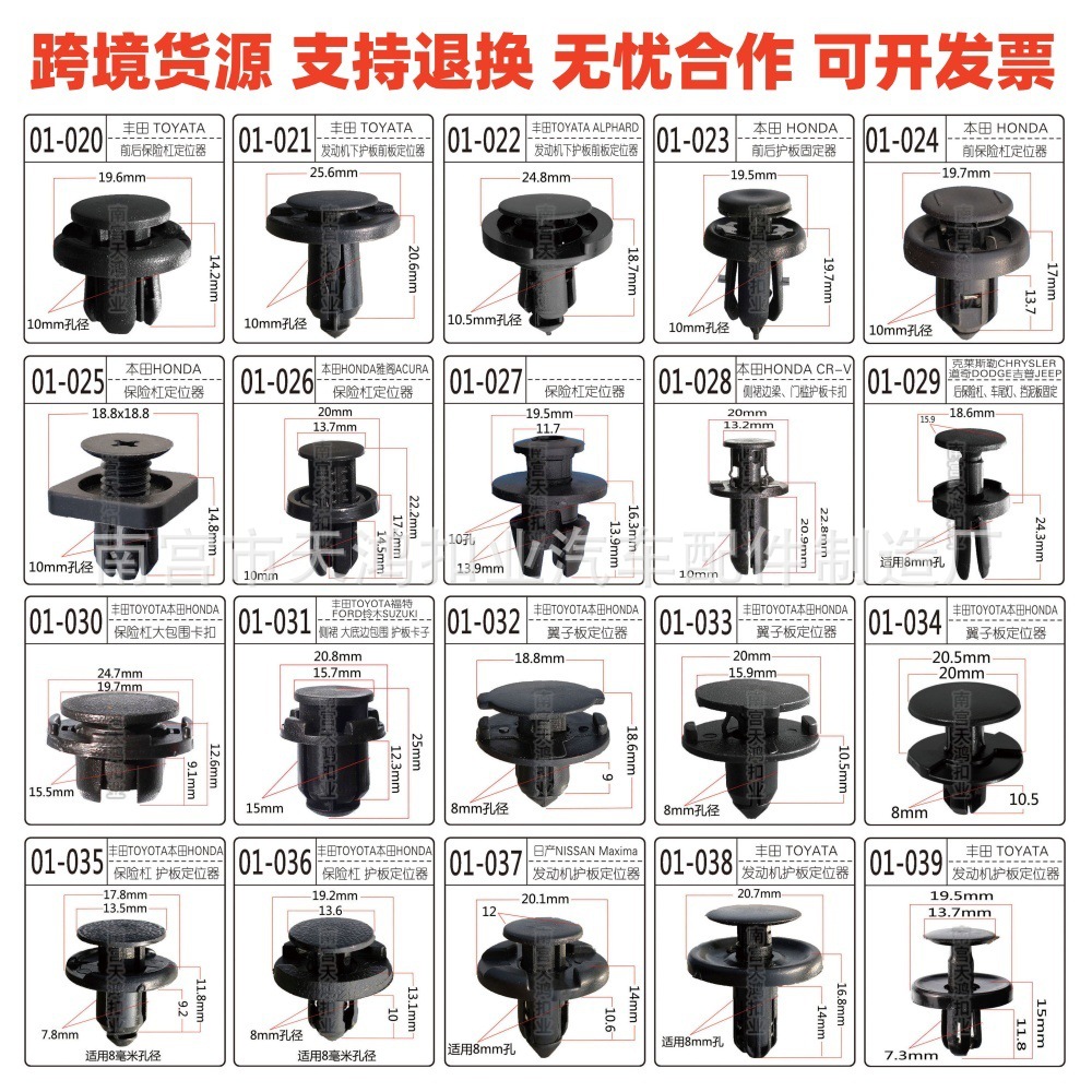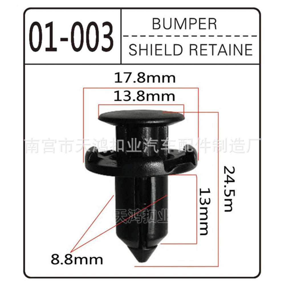 河北省南宫市天鸿扣业汽车配件制造厂,主要对汽车卡扣、汽车塑料卡扣、塑料紧固件,塑料铆钉等产品的生产加工。我们拥有完整的质量管理体系。南宫市天鸿扣业汽车配件制造厂的诚信、服务和产品质量获得业界认可。欢迎各界朋友莅临参观、指导和业务 。