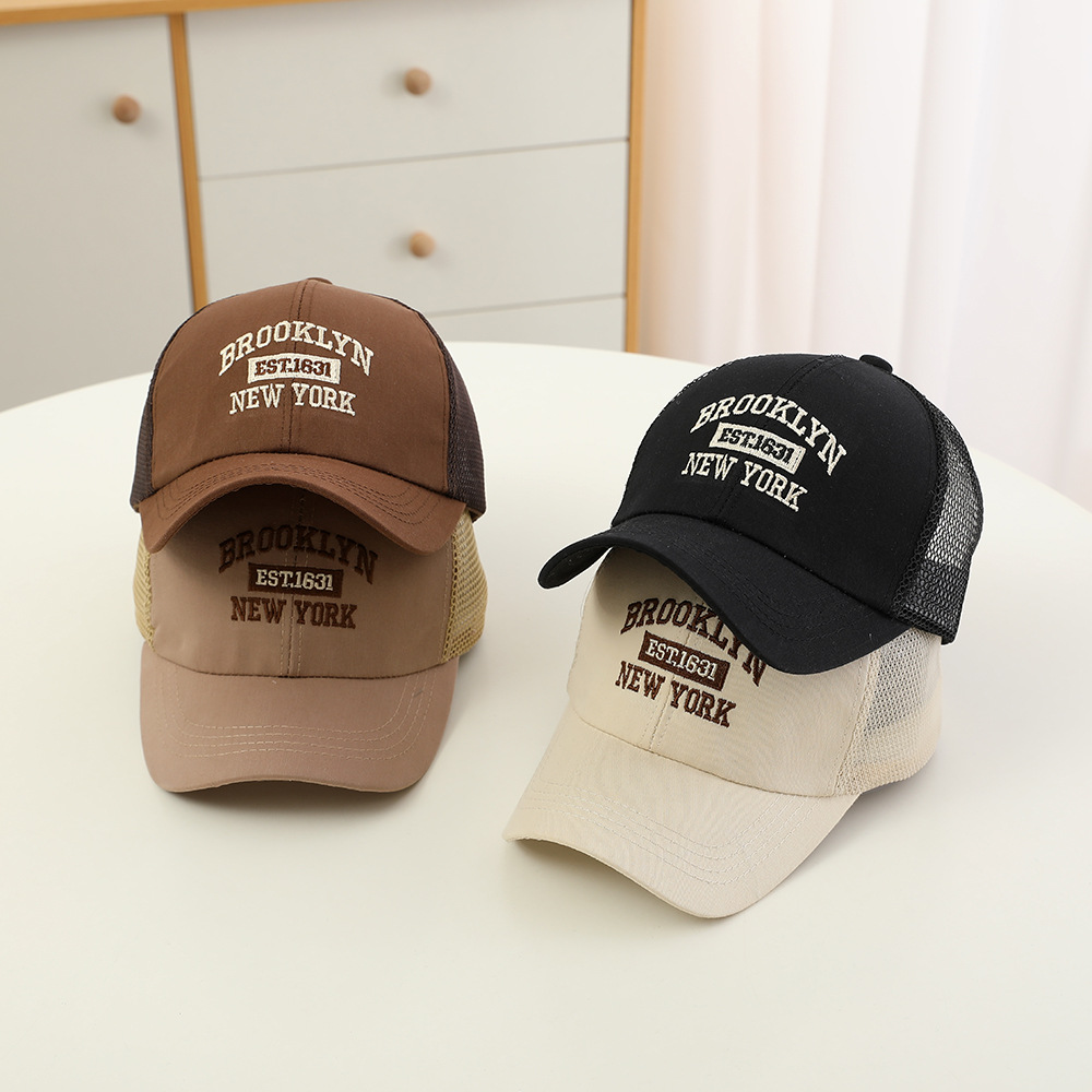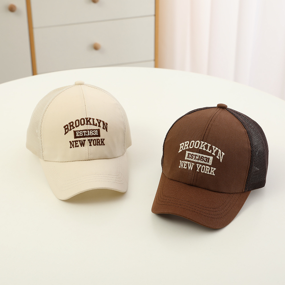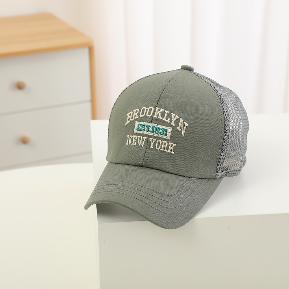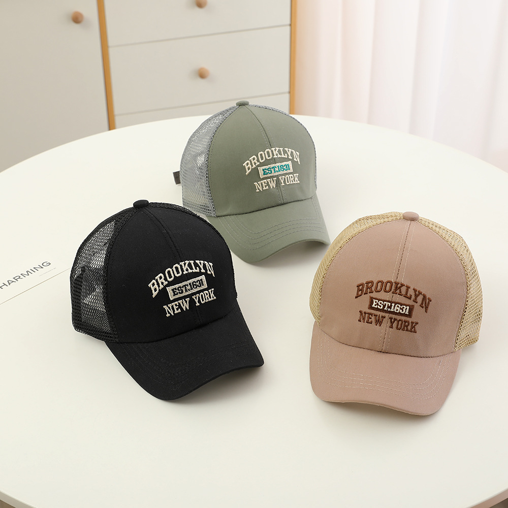 2024 새로운 편지 자수 어린이 메쉬 모자 여름 한국식 야외 활동 아기 햇살 오리 혀 모자