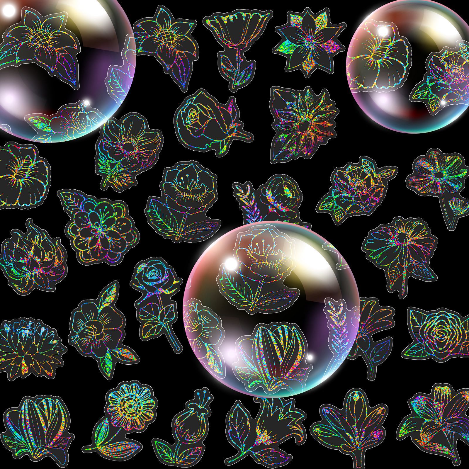 50 다양한 꽃 실버 레이저 스티커 새로운 뜨거운 실버 꽃 손 계정 소재 DIY 장식 투명 스티커스토어 가기