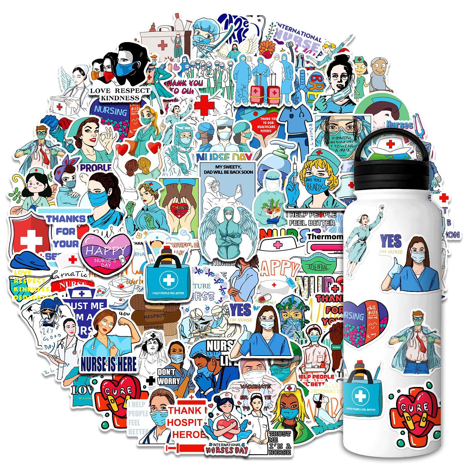 300 간호사의 날 스티커 전문 의사 간호사 낙서 스티커 장식 수하물 노트북 방수 스티커