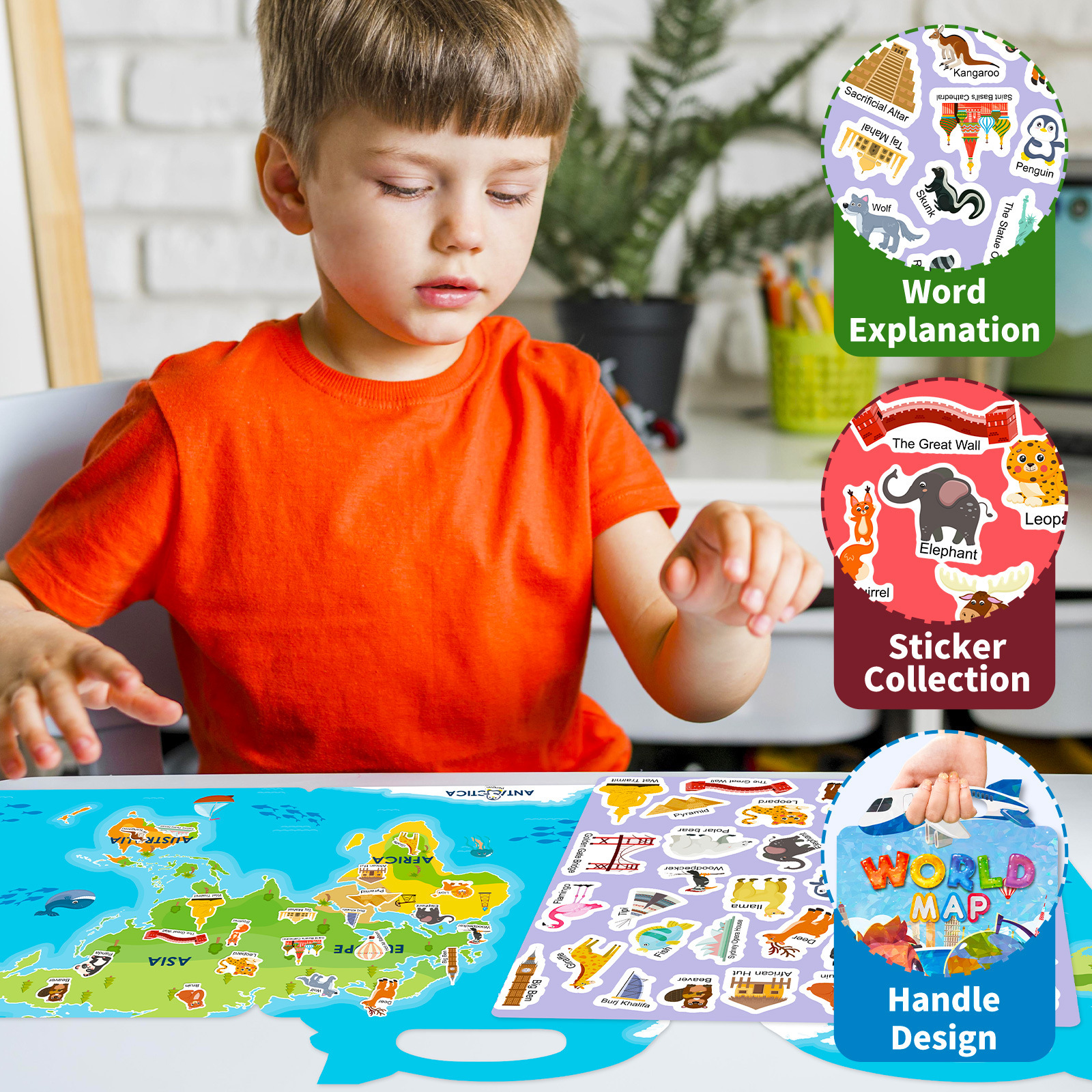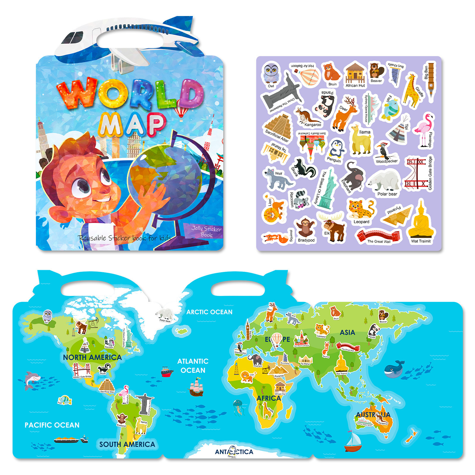 어린이 조기 교육인지 세계지도 초점 붙여 넣기 재배는 휴대용 젤리 스티커 책을 반복적으로 붙여 넣을 수 있습니다.