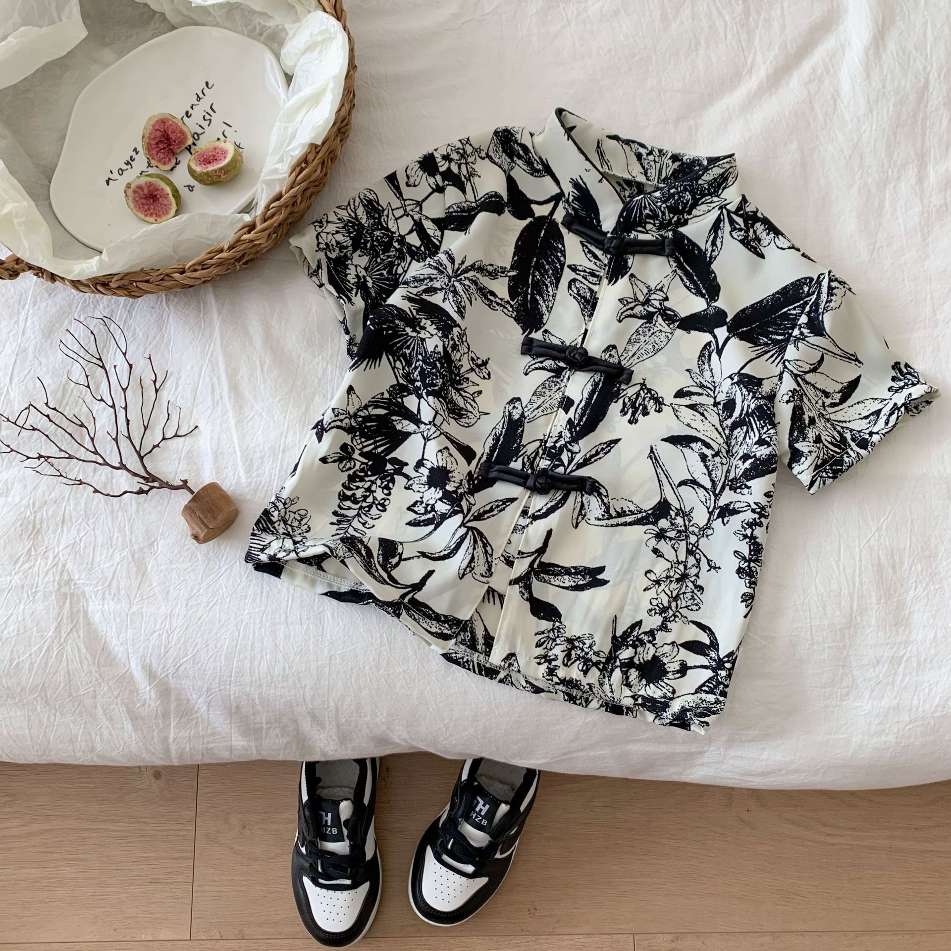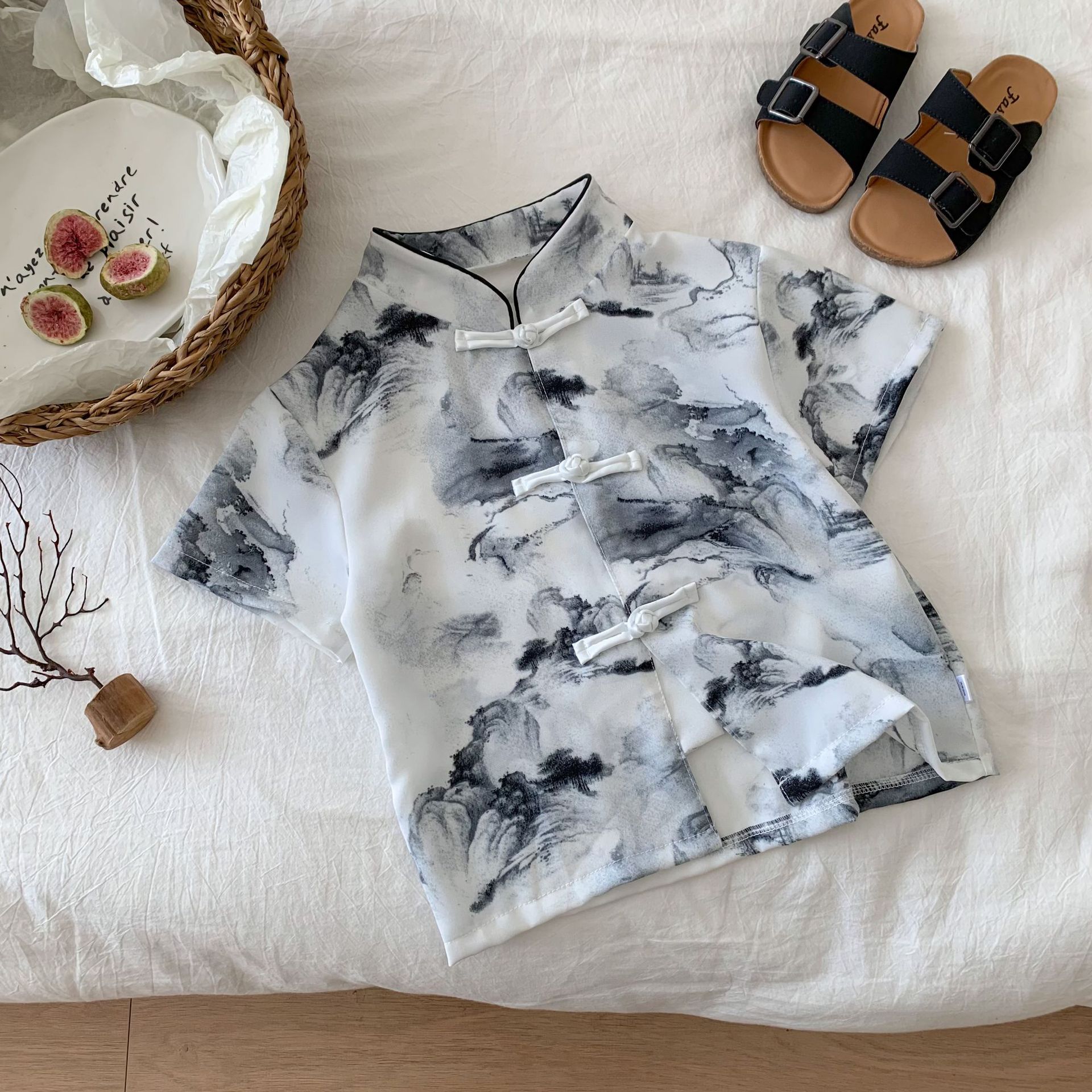 여름 어린이 티셔츠 2025 새로운 소년 셔츠 새로운 중국 스타일 Hanfu 잘 생긴 반팔 탑 아동 의류 도매스토어 가기