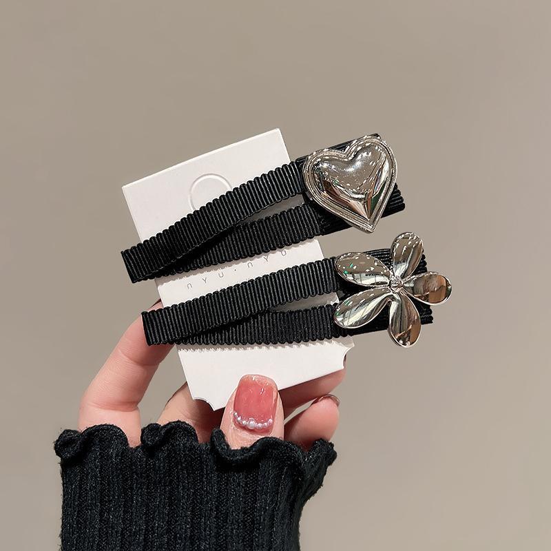 새로운 한국식 금속 검은 패브릭 머리핀 높은 모습의 머리핀 인터넷 유명인 사이드 클립 깨진 머리 앞머리 머리핀 머리 장식스토어 가기