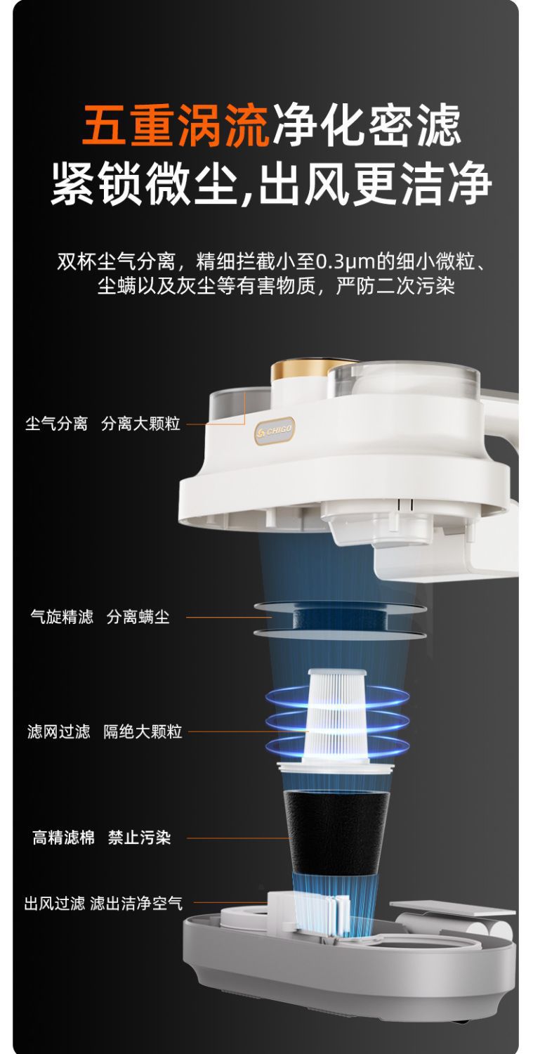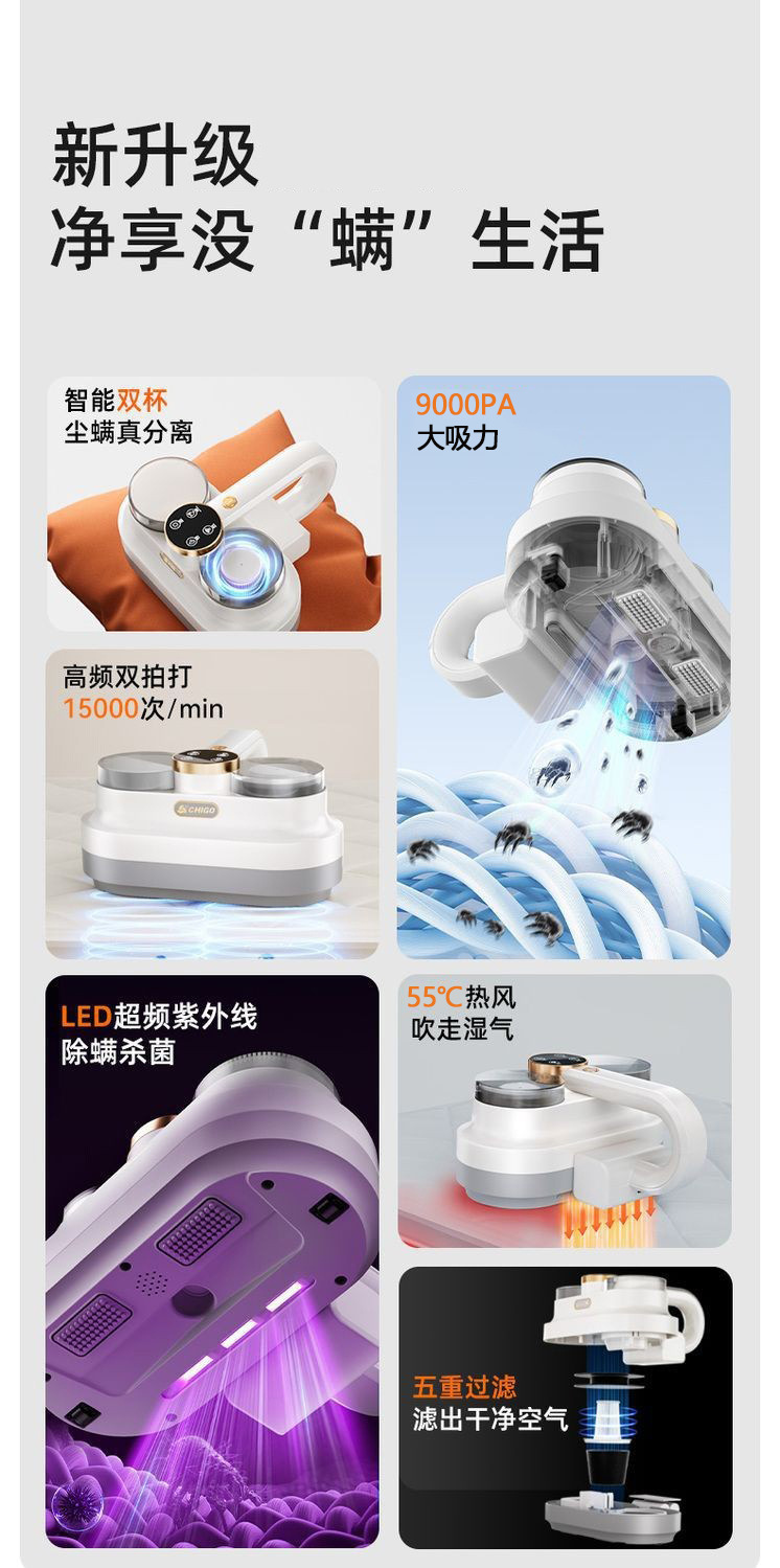 Zhigao 무선 안티 진드기 가구 기능 디스플레이 휴대용 대형 흡입 UV 살균 안티 진드기 더블 팻