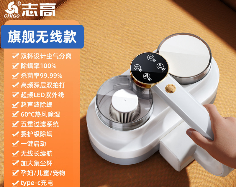 Zhigao 무선 안티 진드기 가구 기능 디스플레이 휴대용 대형 흡입 UV 살균 안티 진드기 더블 팻스토어 가기