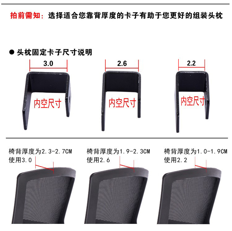 • 내부 치수 2.6 클립 (등받이 두께 1.9 ~ 2.3cm 에 적합)