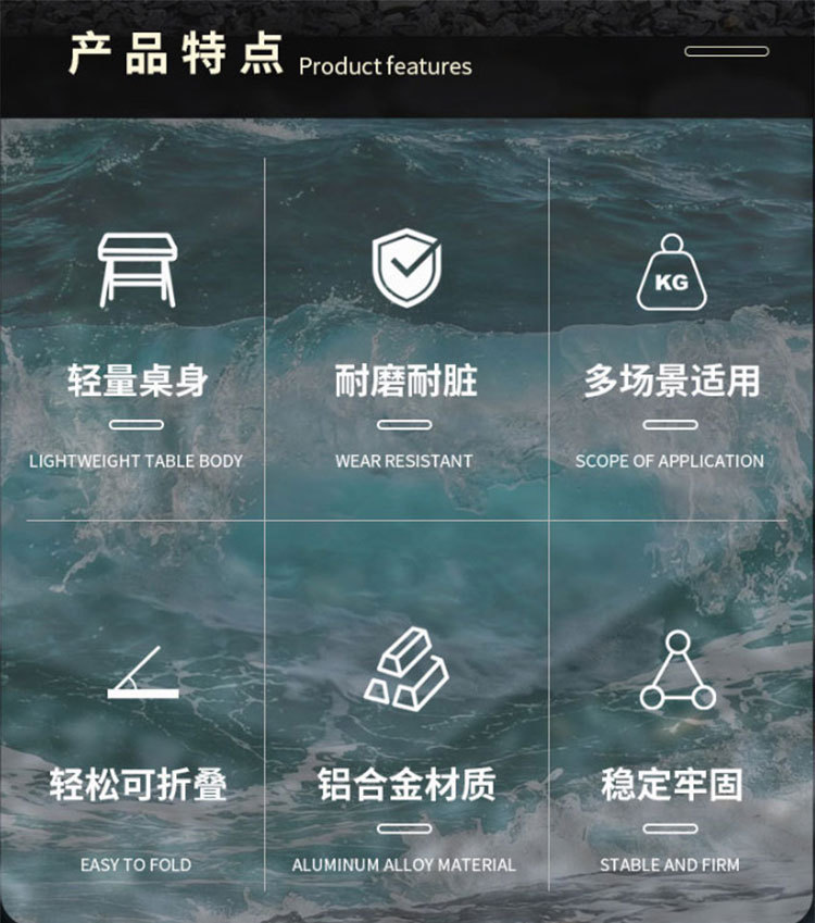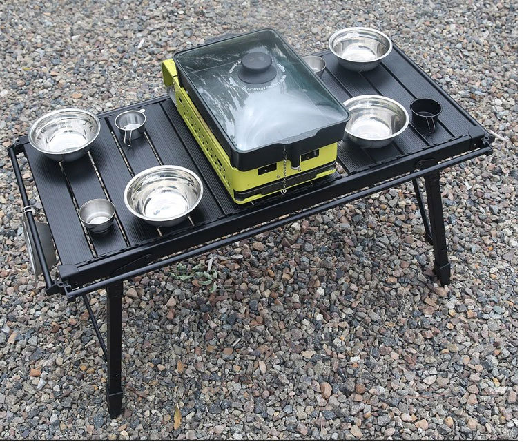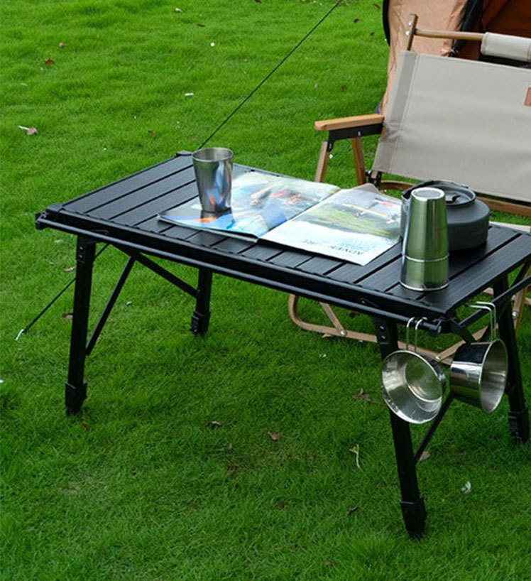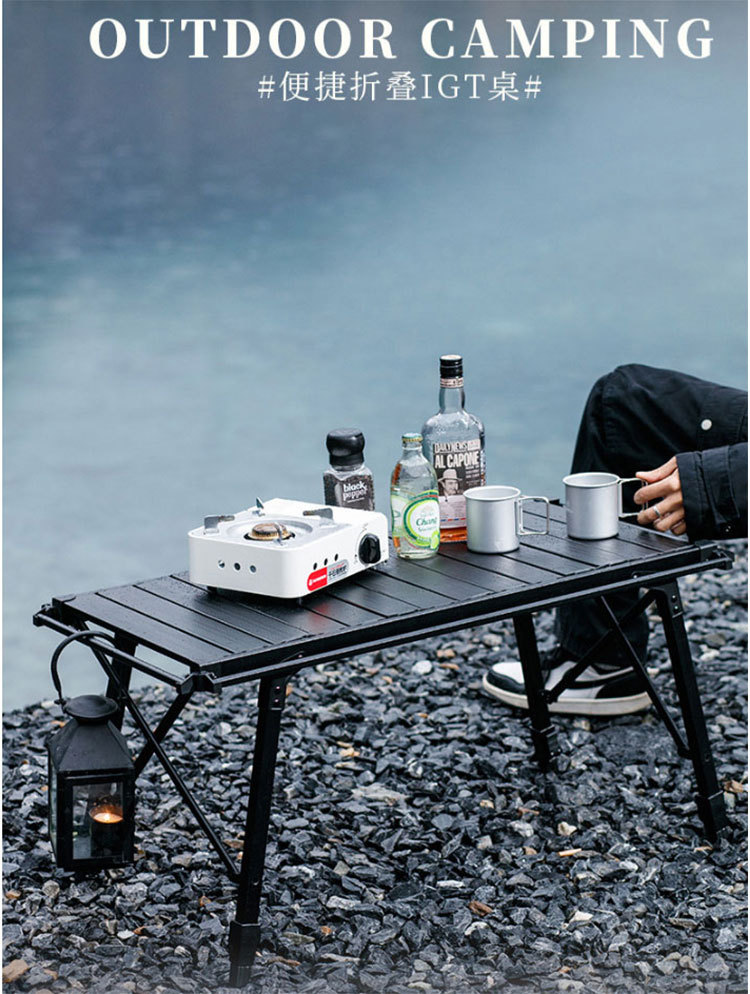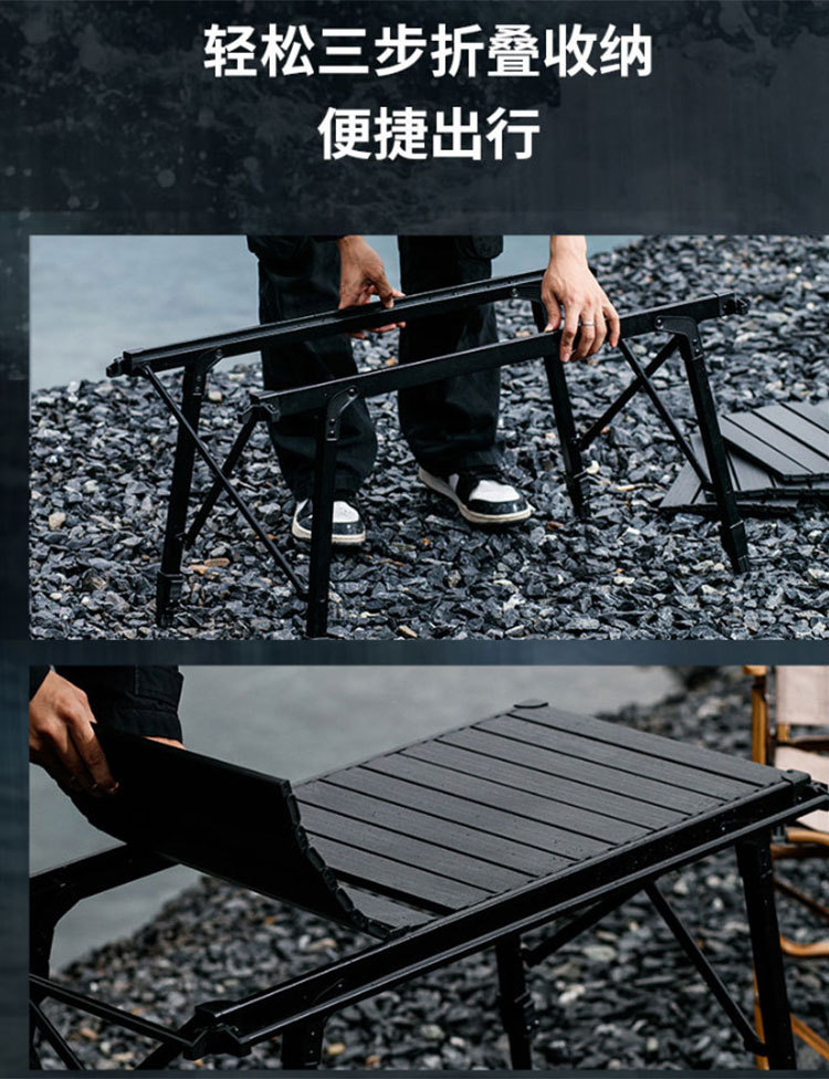 • 로고가 있는 알루미늄 합금 접이식 계란말이 테이블 블랙