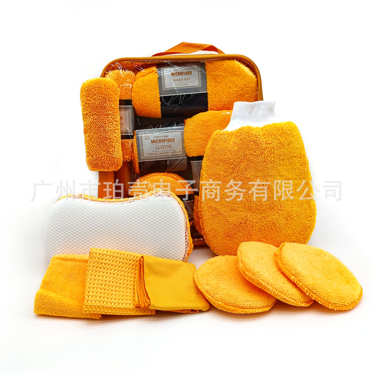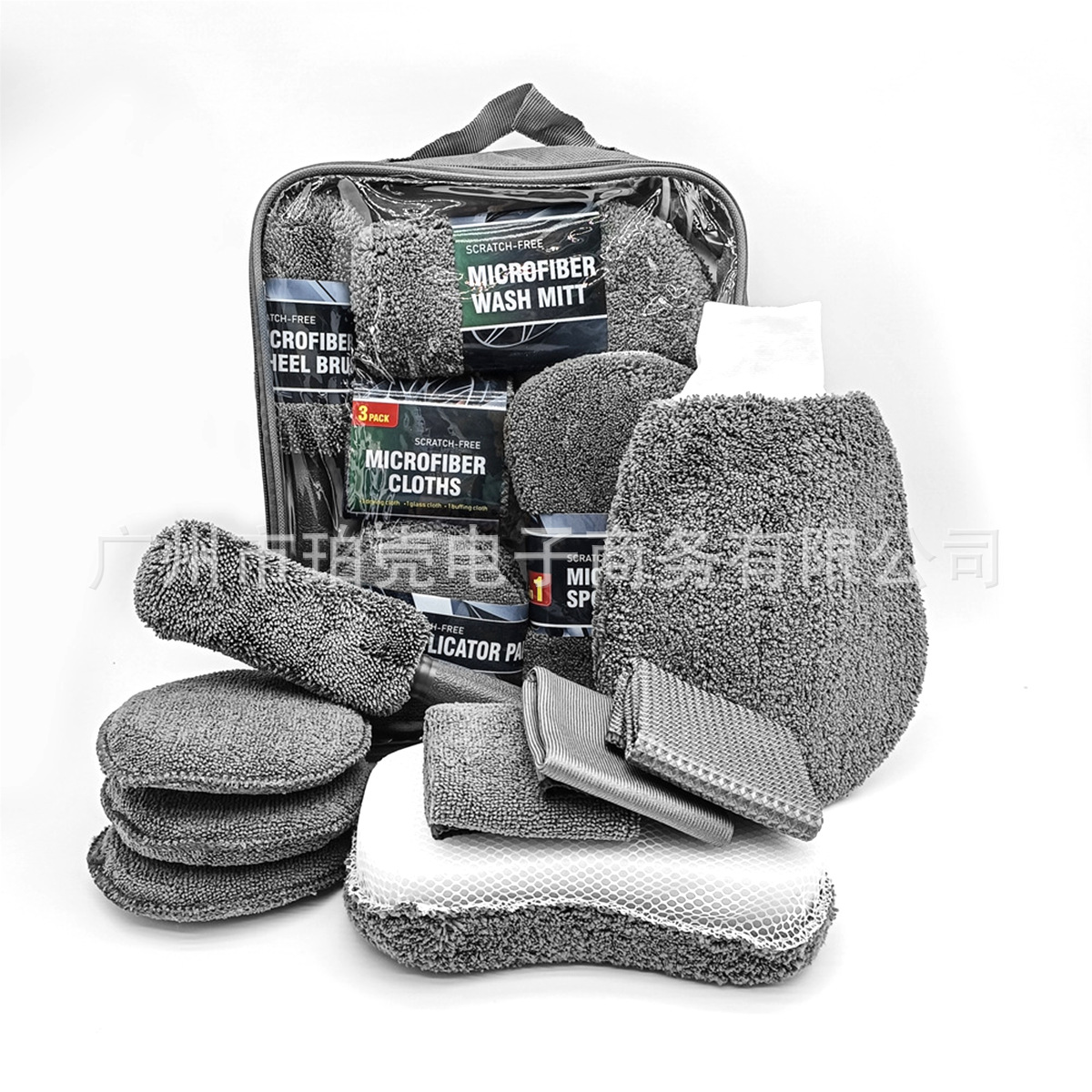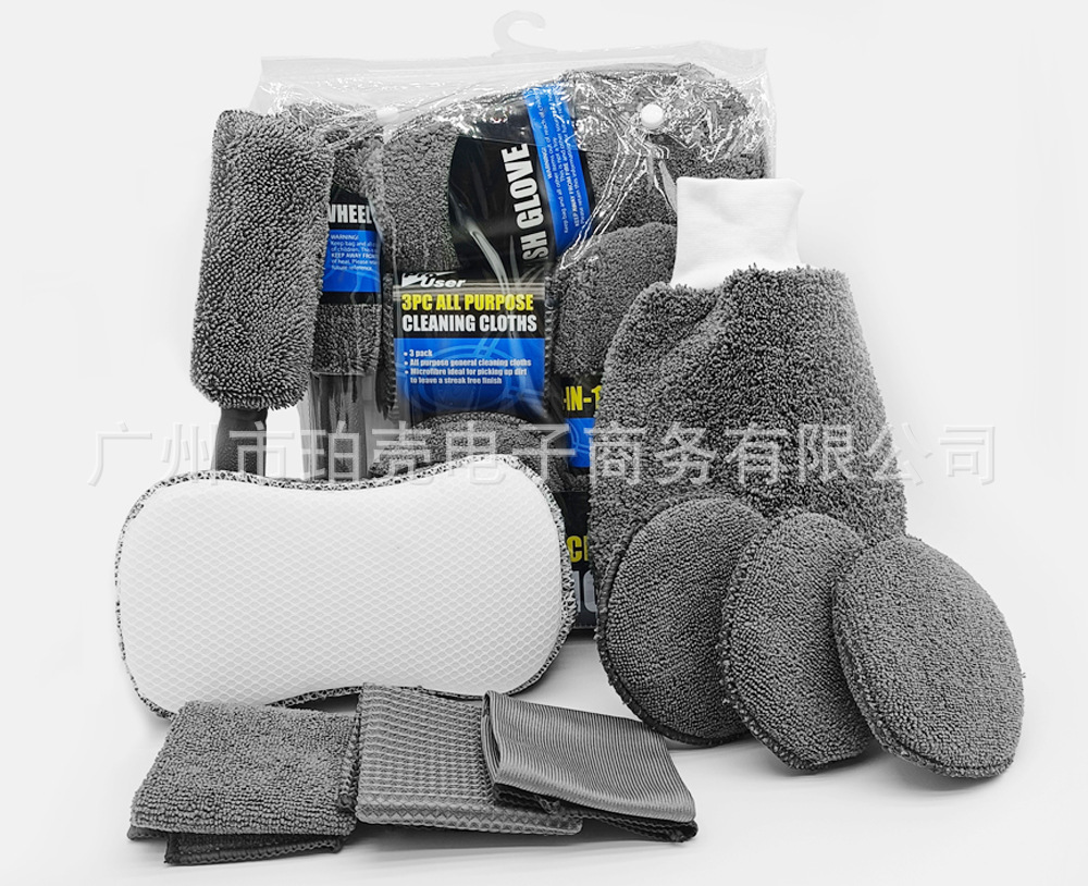 内含产品:汽车轮胎刷1件+毛巾布打蜡饼3个+8字型高低毛洗车海绵块+玻璃巾/经编毛巾/华夫格+高低毛手套1只