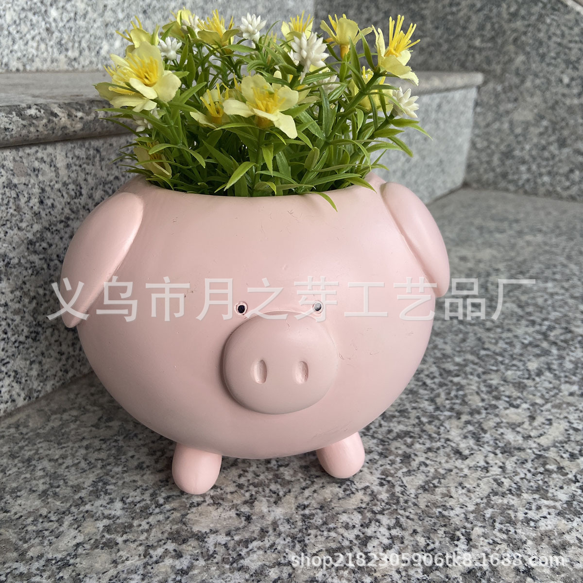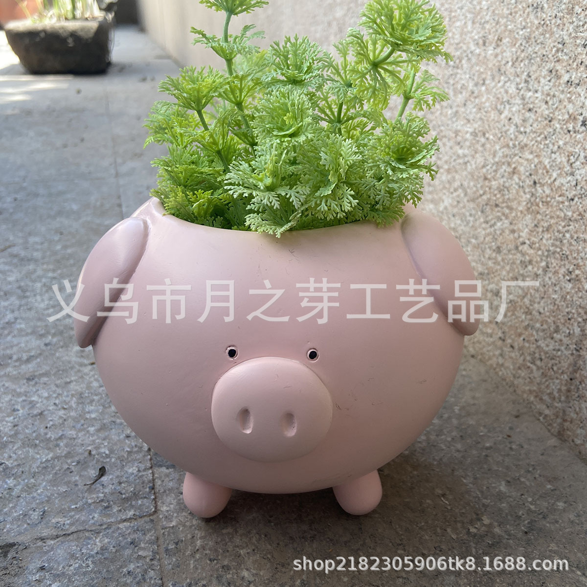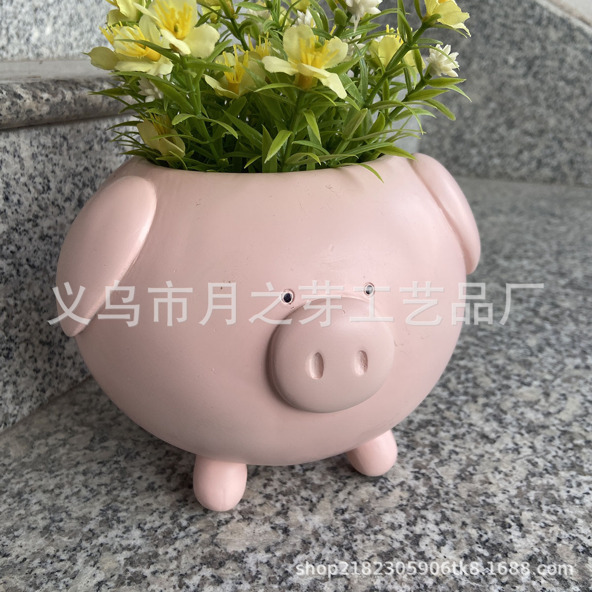 1 조각 귀여운 만화 돼지 모양 녹색 식물 냄비 창조적 인 간단한 즙이 많은 꽃 냄비 정원 안뜰 장식