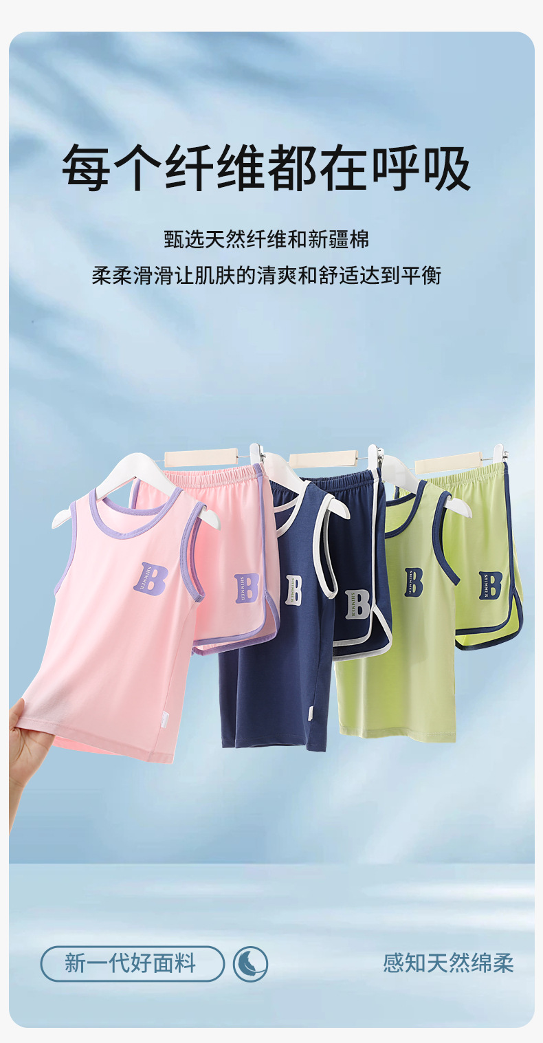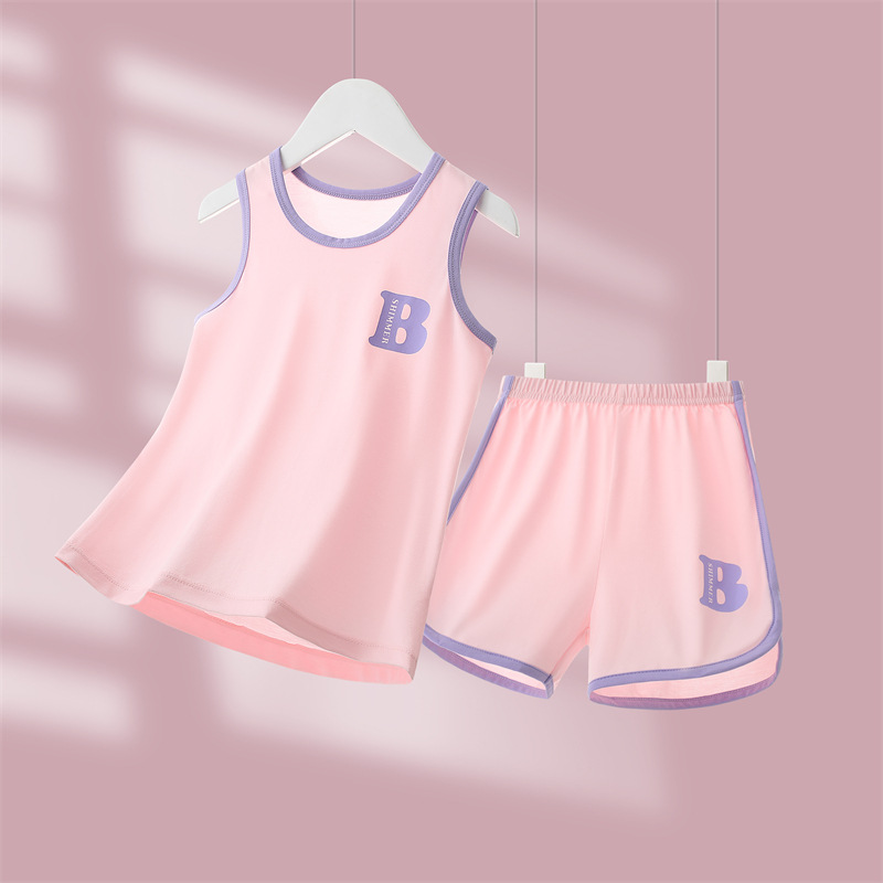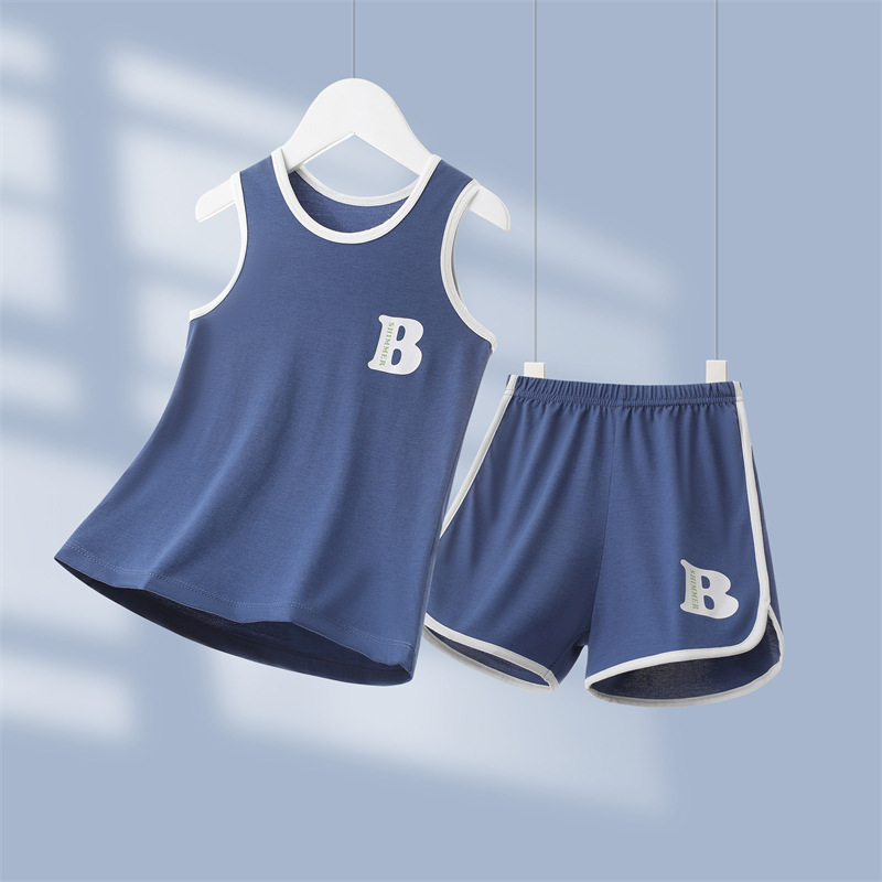 어린이 모달 조끼 세트 얇은 가정 소년과 소녀의 민소매 에어컨 옷 여름 아기 아이스 실크면 잠옷스토어 가기