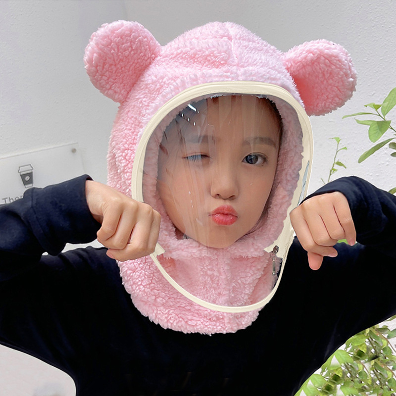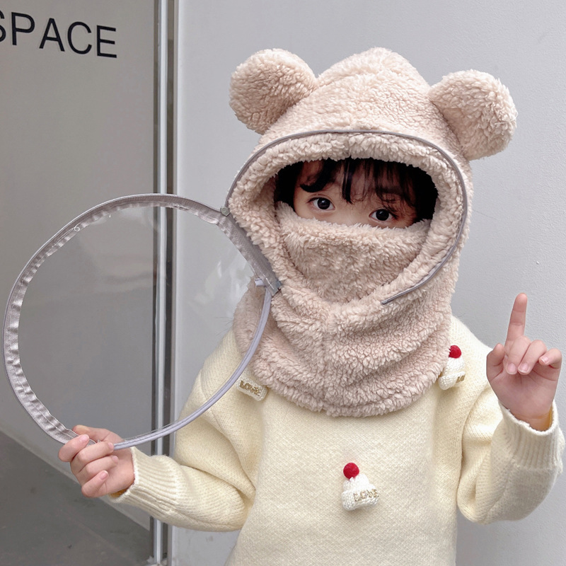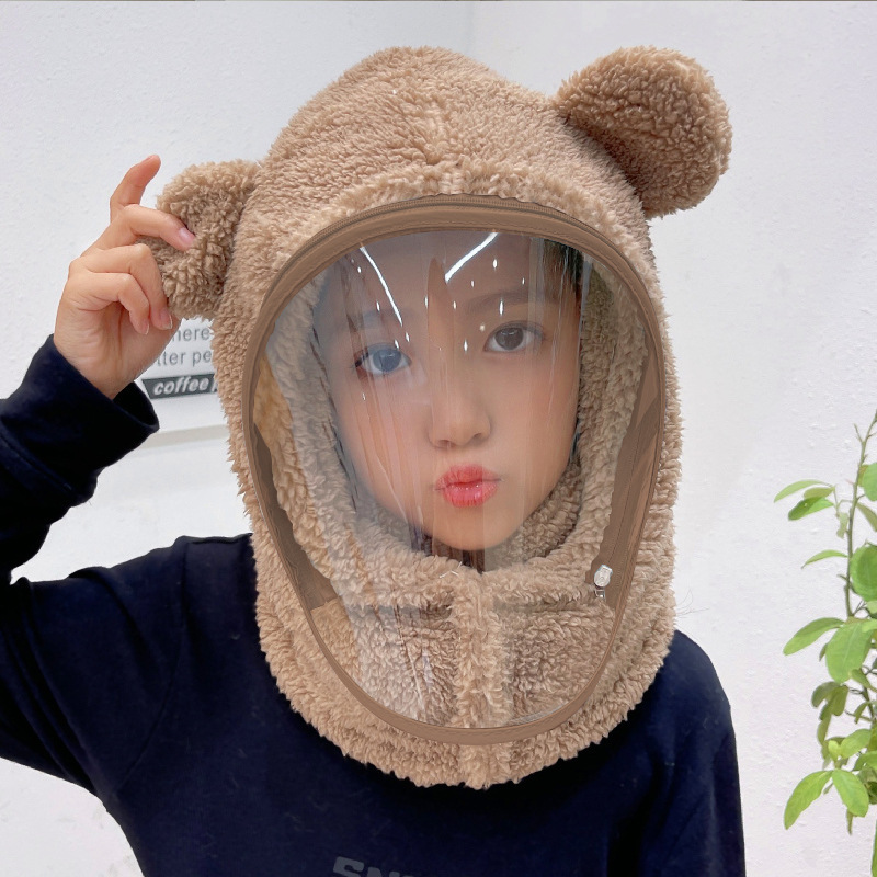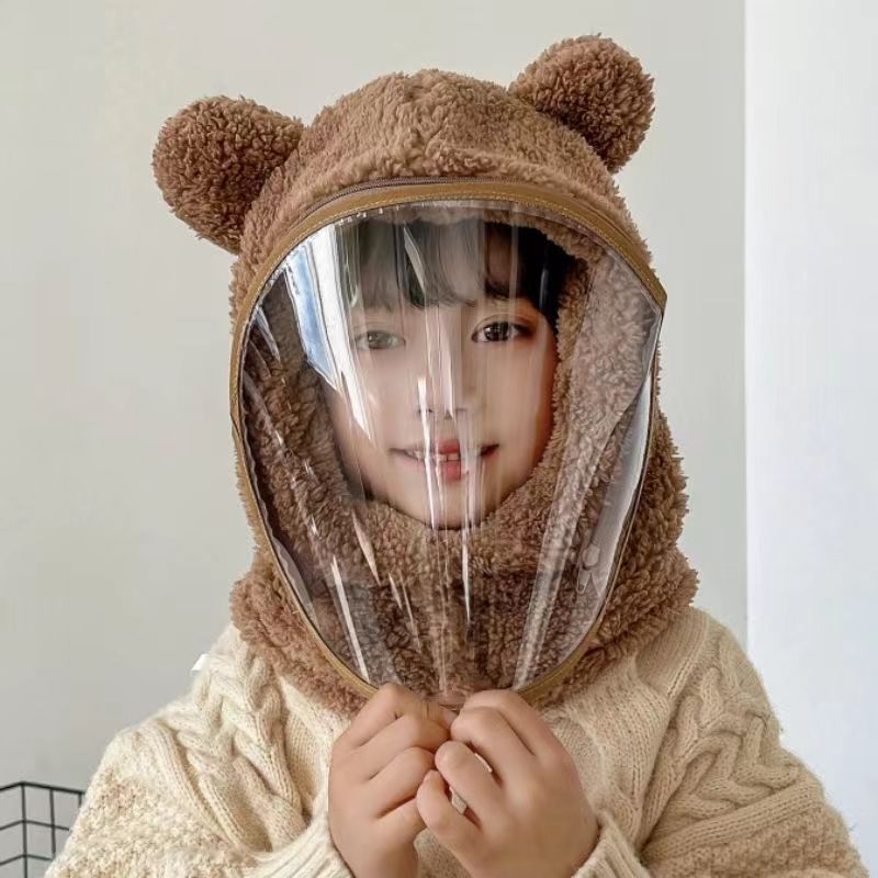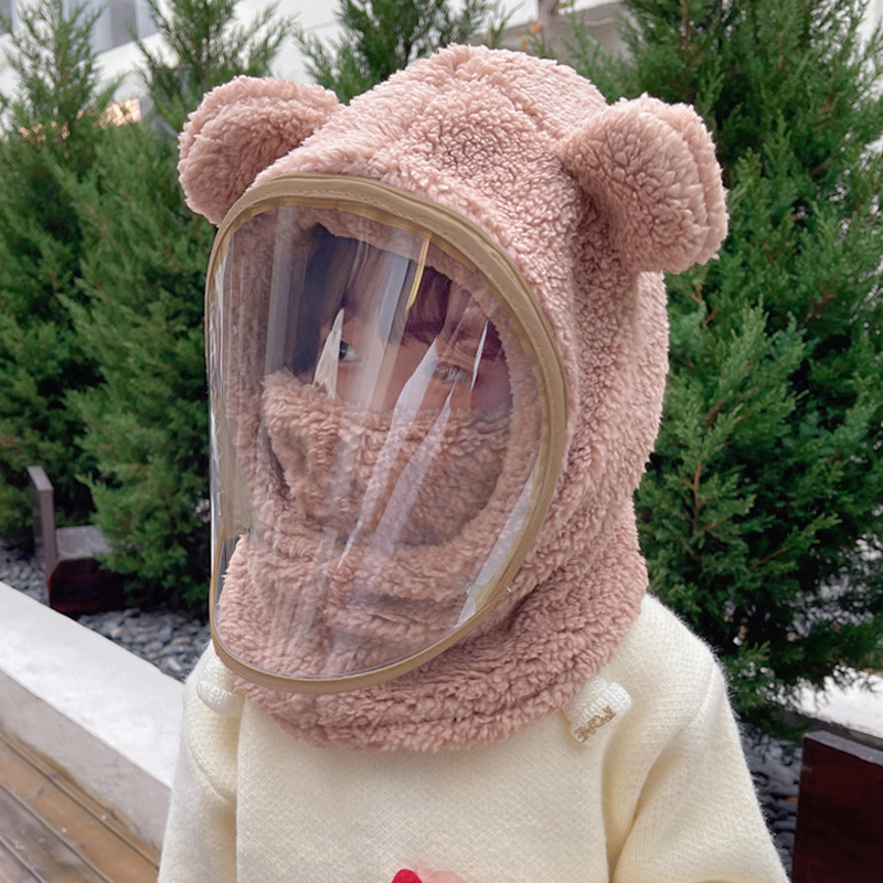 어린이 모자 방풍 모자 겨울 스카프 통합 모자 마스크 전체 얼굴 보호 두꺼운 사이클링 부모 자식 곰 풀오버 모자스토어 가기