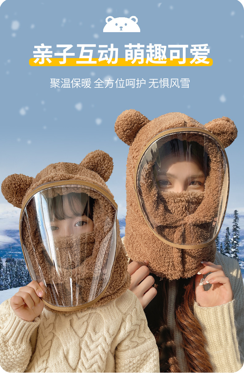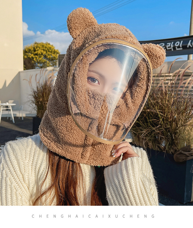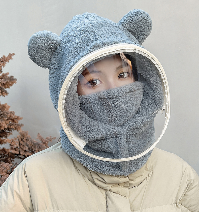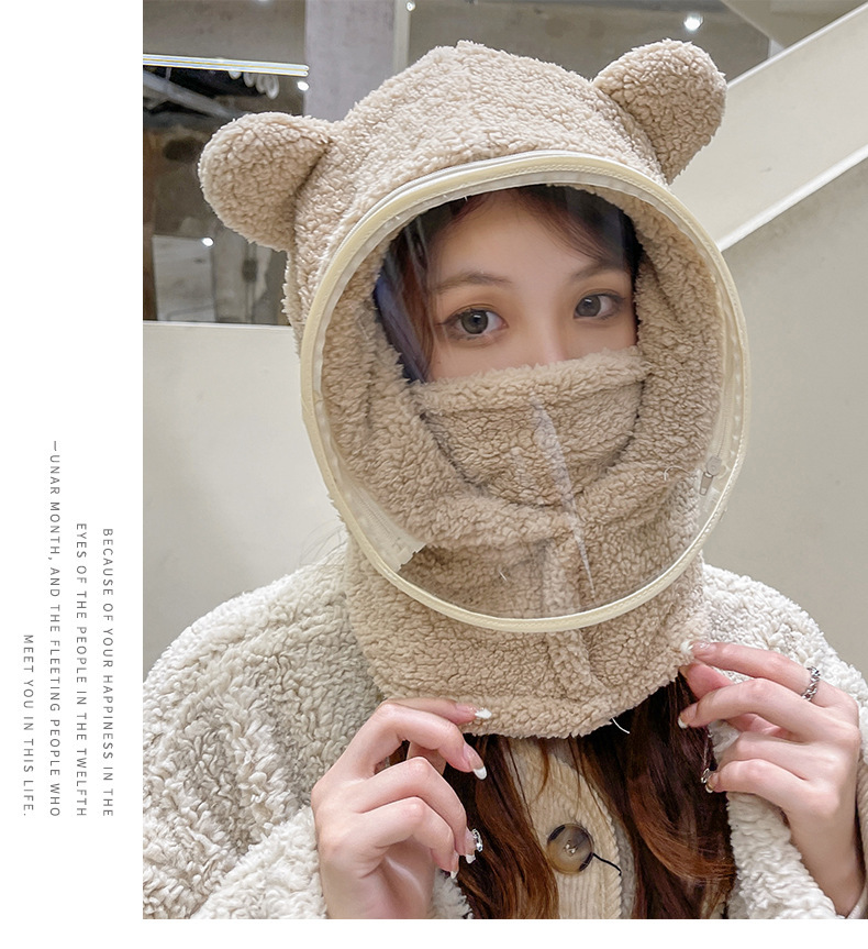 여성용 겨울 모자 성인 학생용 전기차 방한 방풍 마스크 곰돌이 목도리 일체형 모자 방한