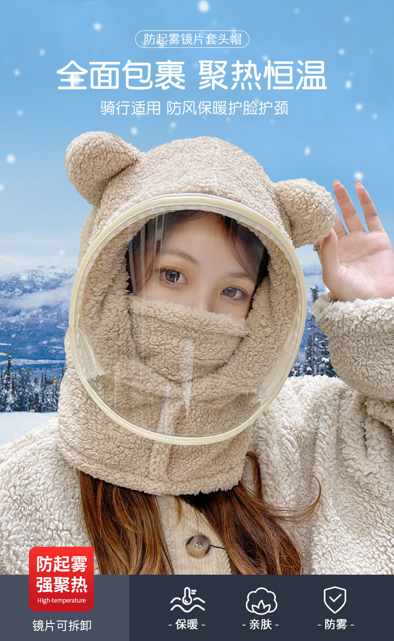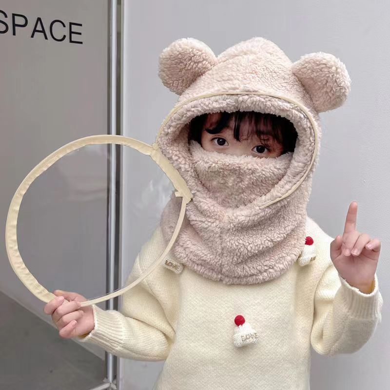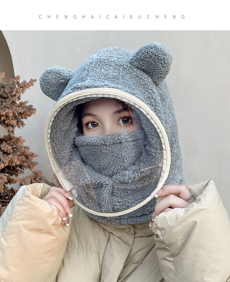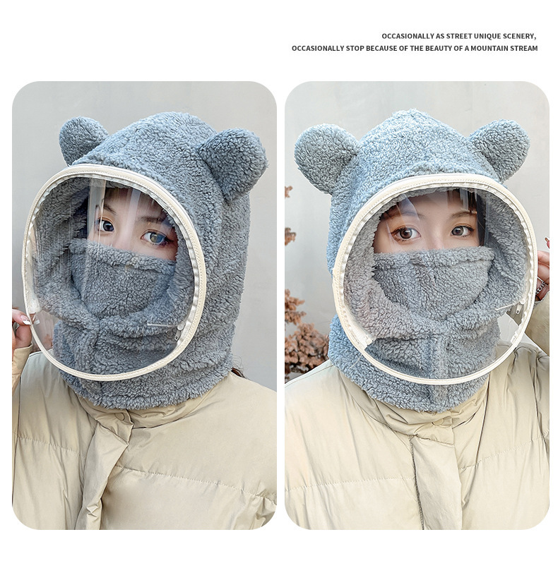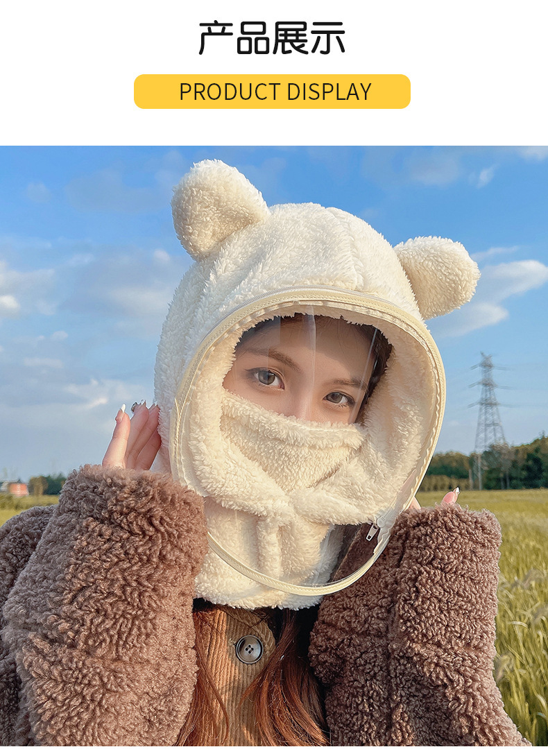 여성용 겨울 모자 성인 학생용 전기차 방한 방풍 마스크 곰돌이 목도리 일체형 모자 방한