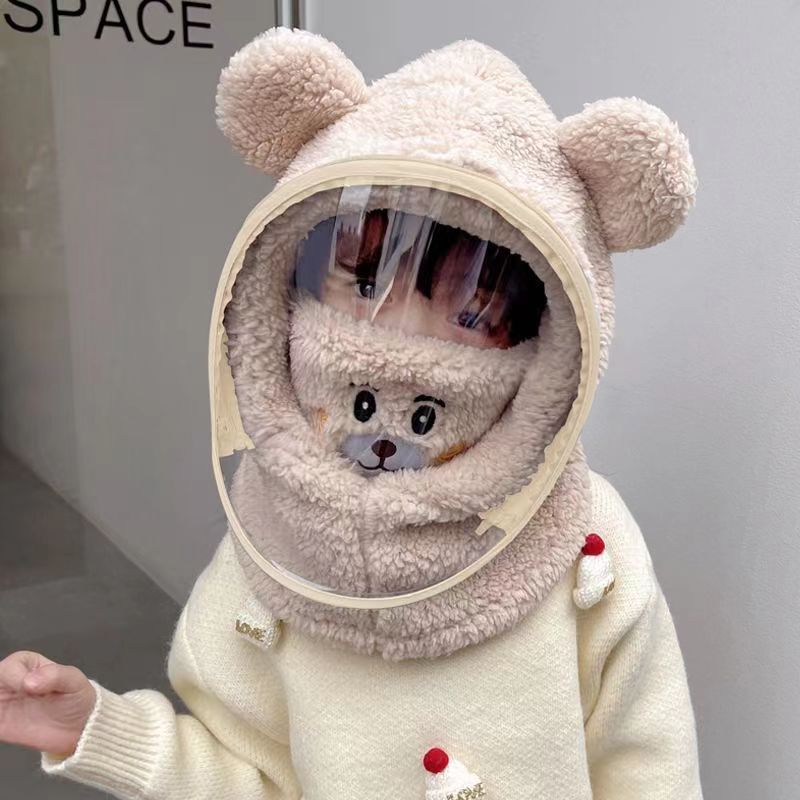여성용 겨울 모자 성인 학생용 전기차 방한 방풍 마스크 곰돌이 목도리 일체형 모자 방한스토어 가기
