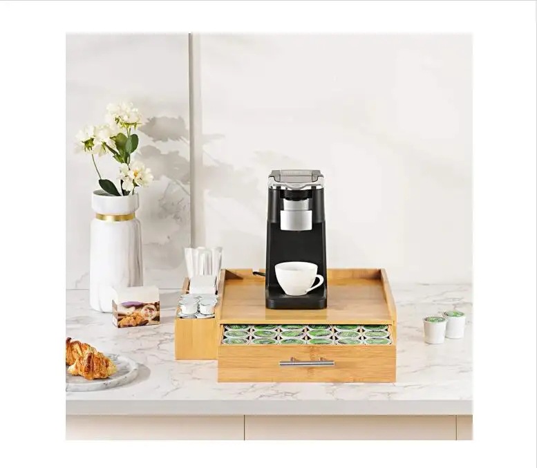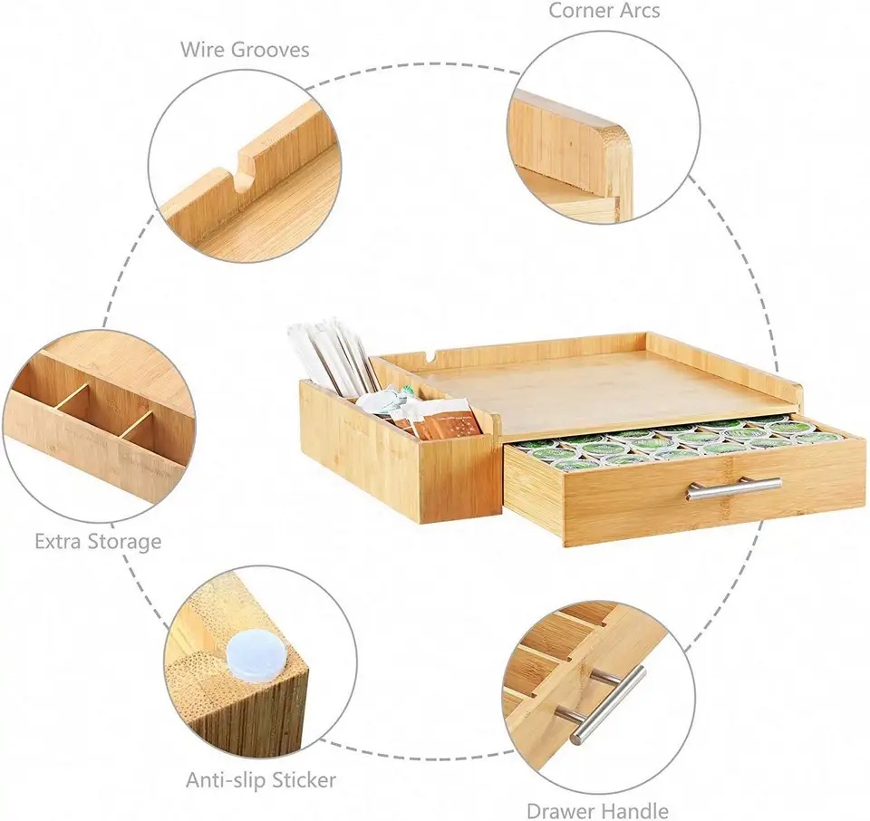 대나무 티백 커피 캡슐 보관 상자 커피 머신 기본 서랍 유형 캡슐 커피 보관 상자
