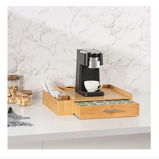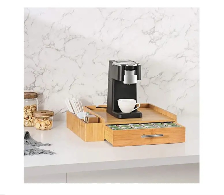 대나무 티백 커피 캡슐 보관 상자 커피 머신 기본 서랍 유형 캡슐 커피 보관 상자스토어 가기