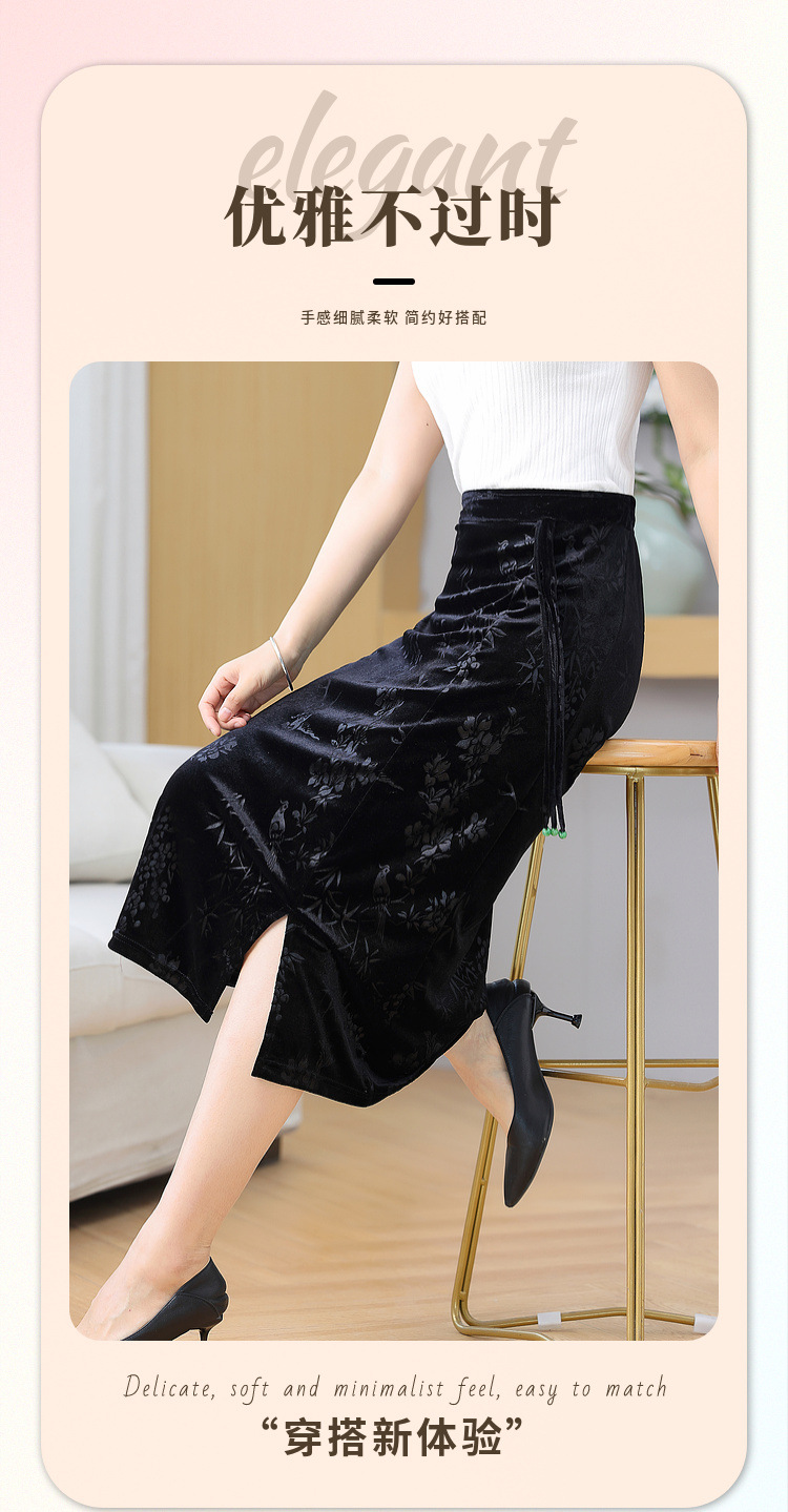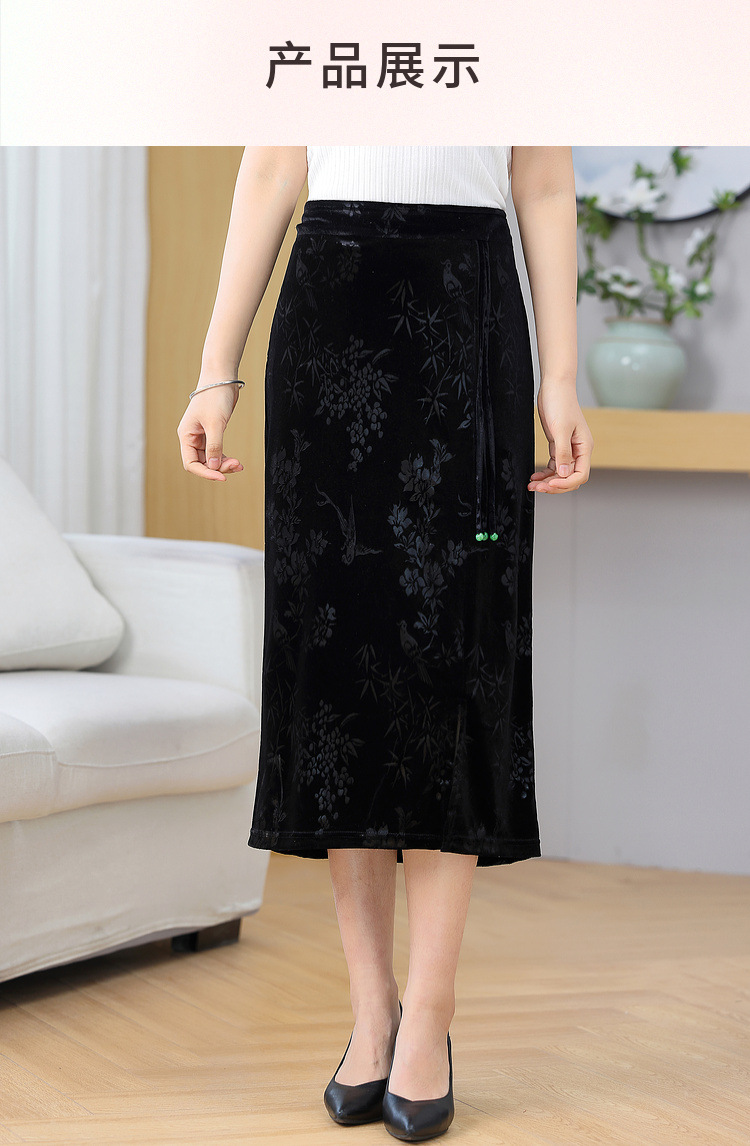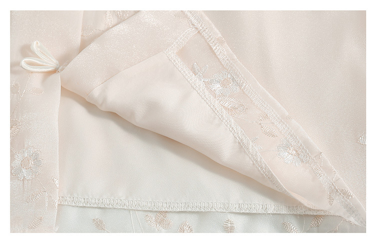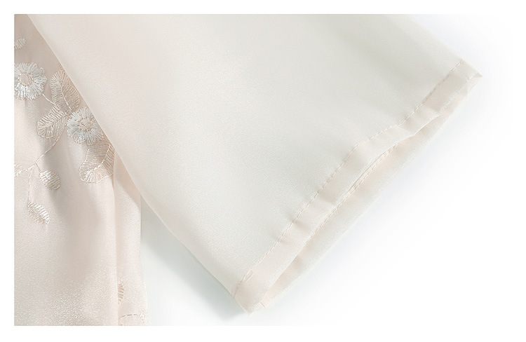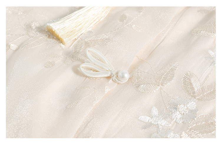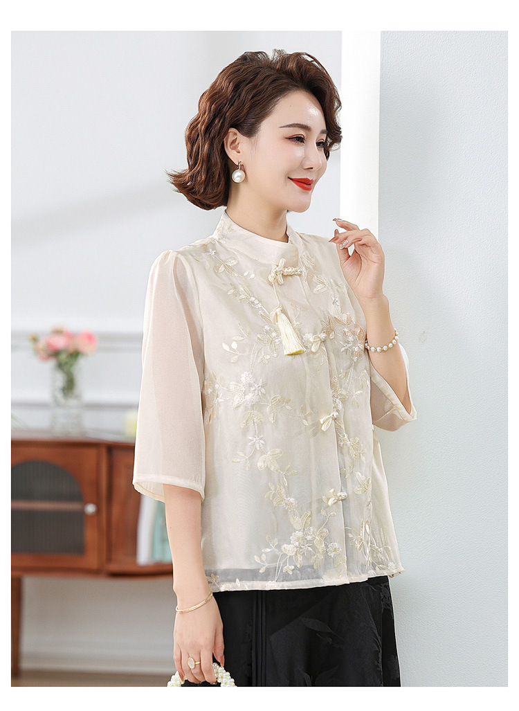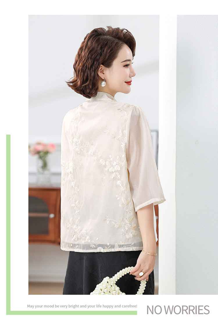 2024 봄과 여름 새로운 중국 스타일의 국가 스타일 버클 스탠드 칼라 캐주얼 쉬폰 수 놓은 셔츠와 여성을위한 스커트 투피스 세트스토어 가기