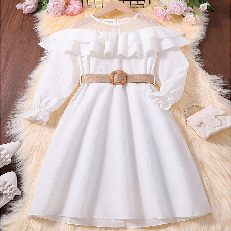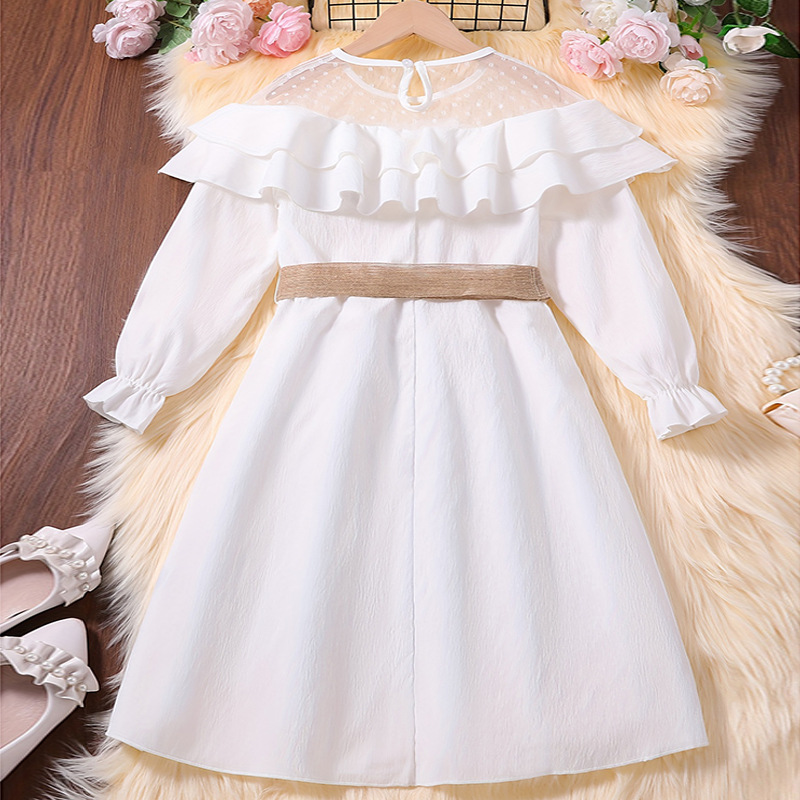 소녀 보헤미안 원피스 2024 봄 국경 스티칭 메쉬 레이스 공주 원피스 여자 치마스토어 가기