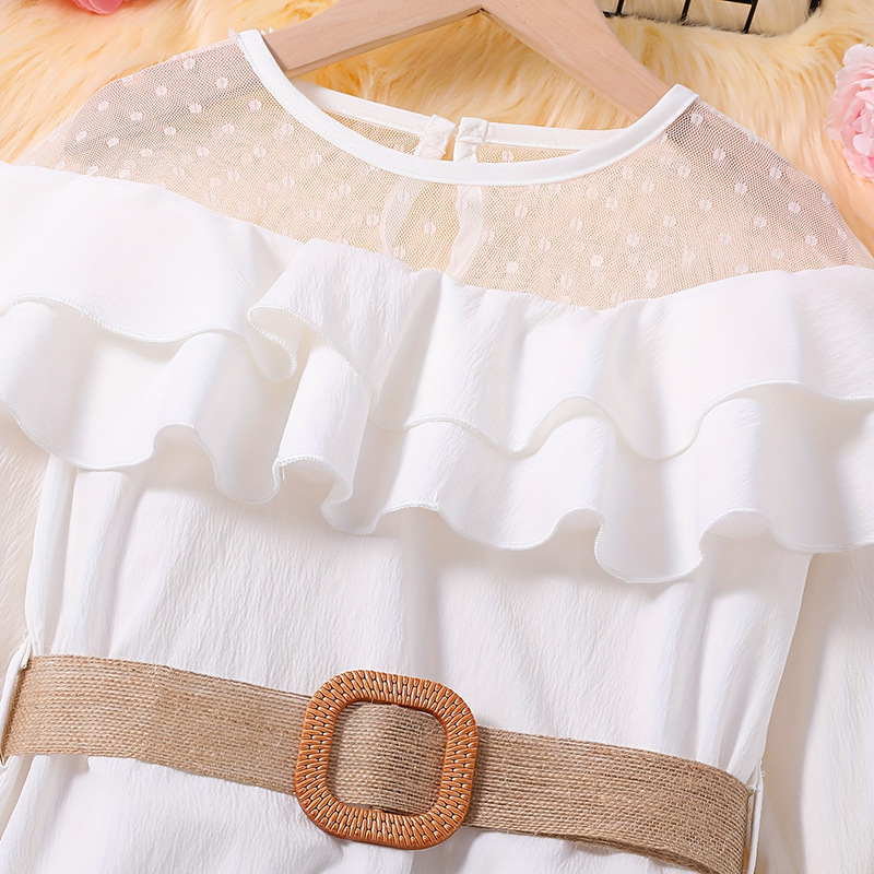소녀 보헤미안 원피스 2024 봄 국경 스티칭 메쉬 레이스 공주 원피스 여자 치마