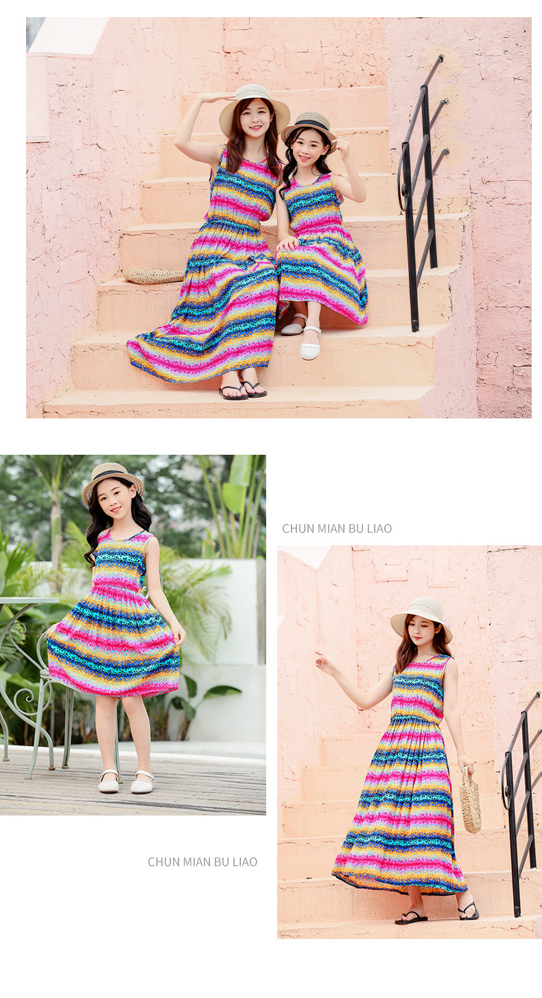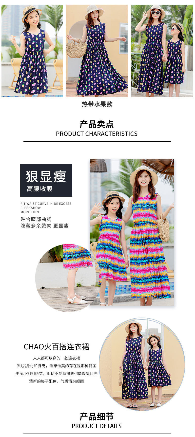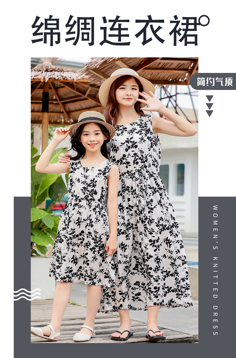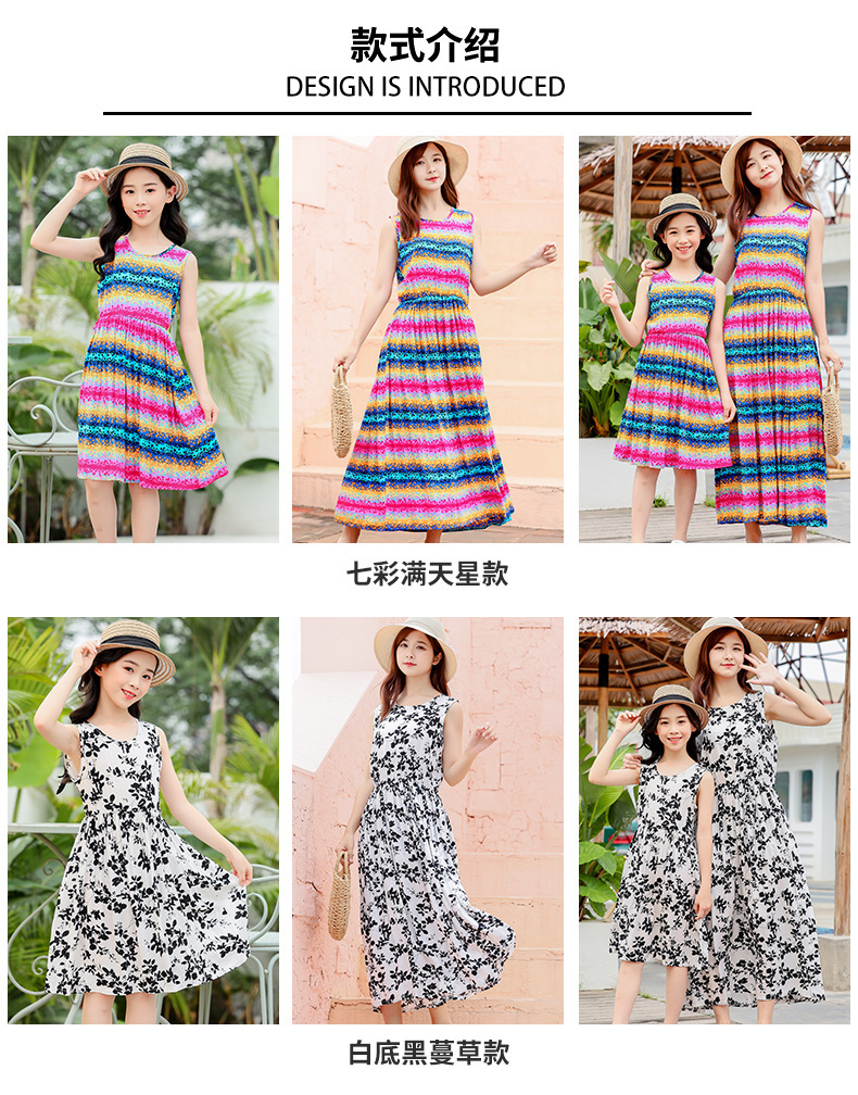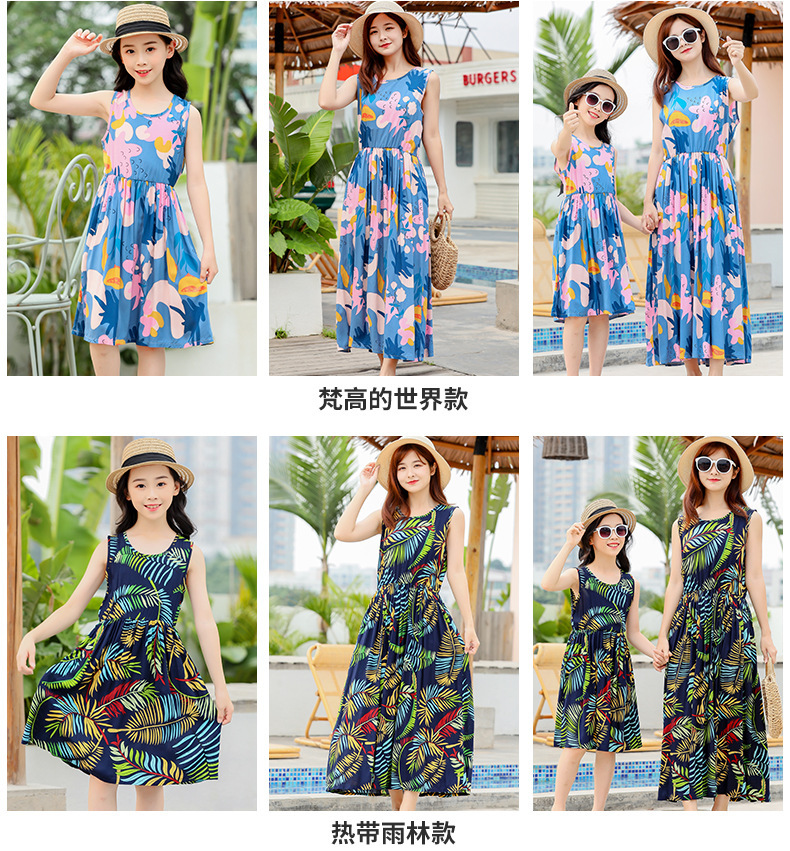어린이 비치 스커트 부모-자식 얇은 여름 소녀 도매면 실크 해변 패션 2024 새로운 원피스스토어 가기