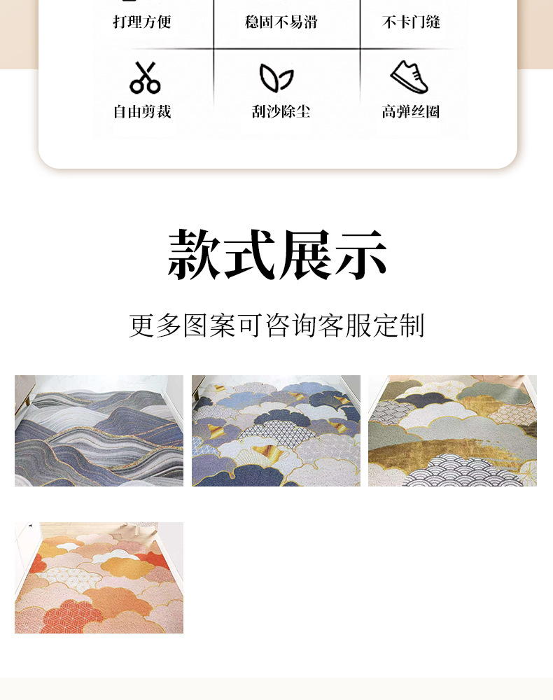 세탁이 필요 없는 바닥 매트, 재단 가능한 인기 실크 루프 매트, 현관문용, 먼지 방지, 출입구 카펫, 흙 제거, 미끄럼 방지, 가정용스토어 가기
