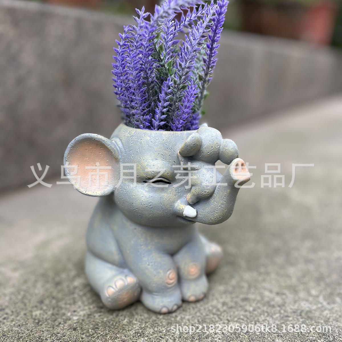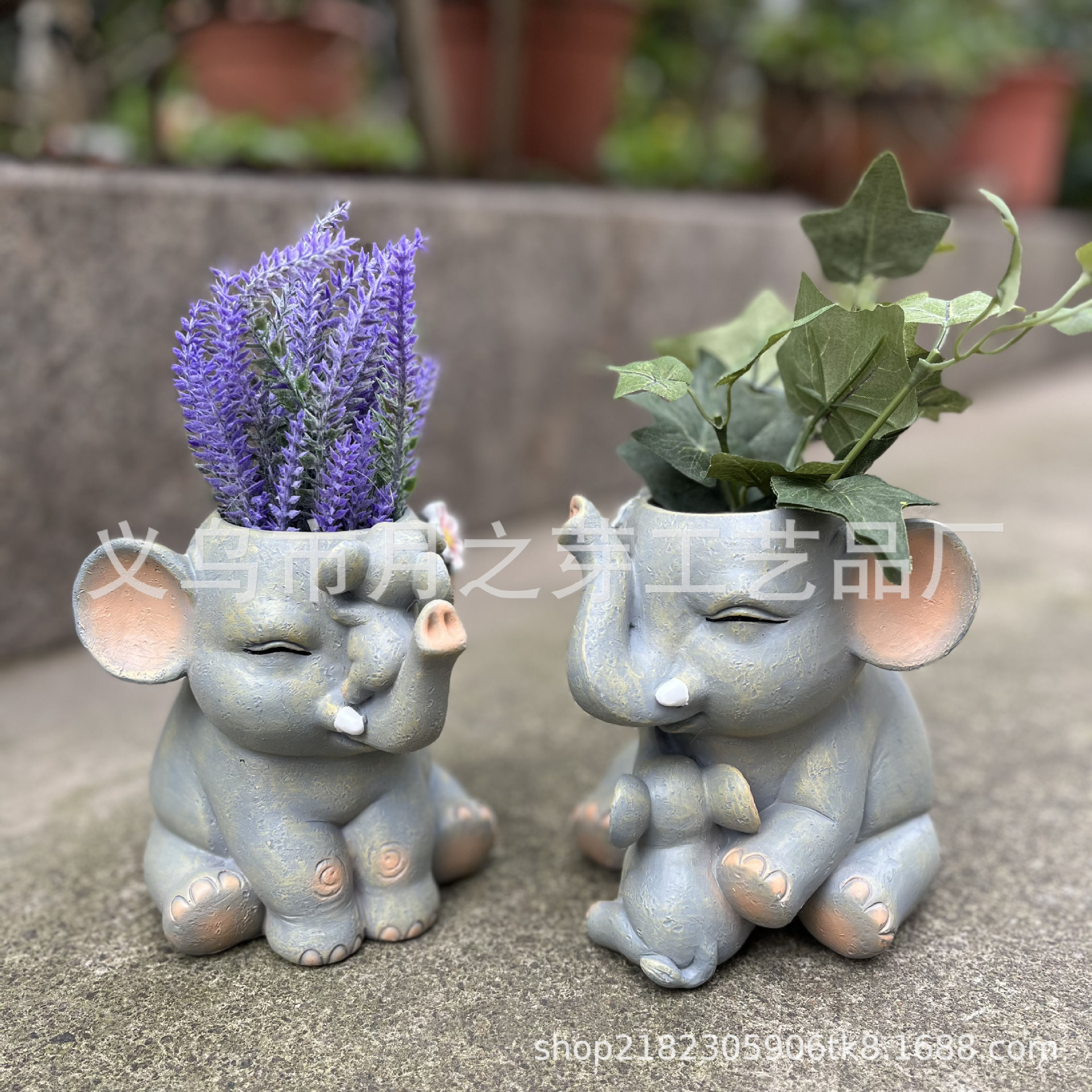 1 조각 유럽 스타일의 창조적 인 귀여운 코끼리 화분 모델링 수지 동상 장식 발코니 정원 안뜰 장식